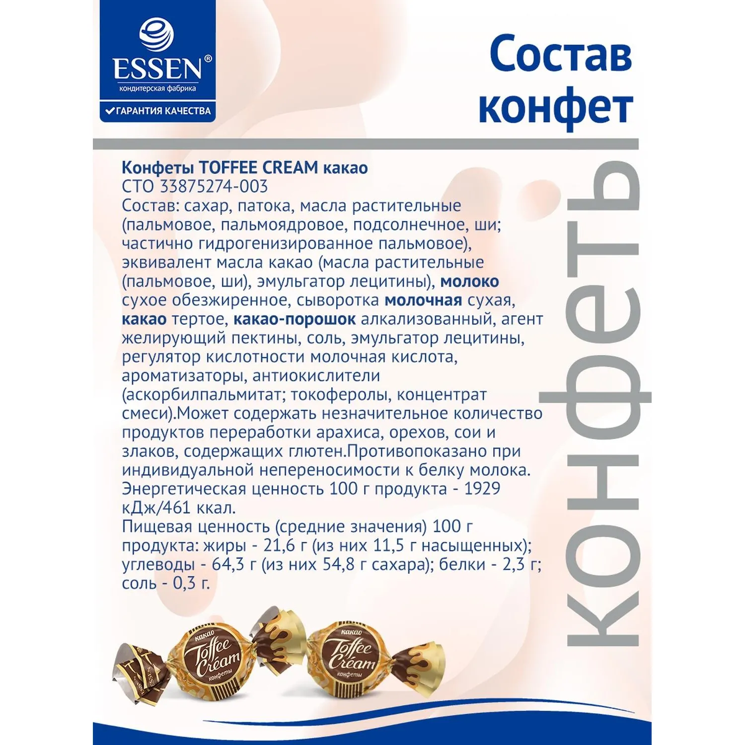 О товаре «Конфеты глазированные Essen Toffee Cream с кремовой начинкой 500 г»