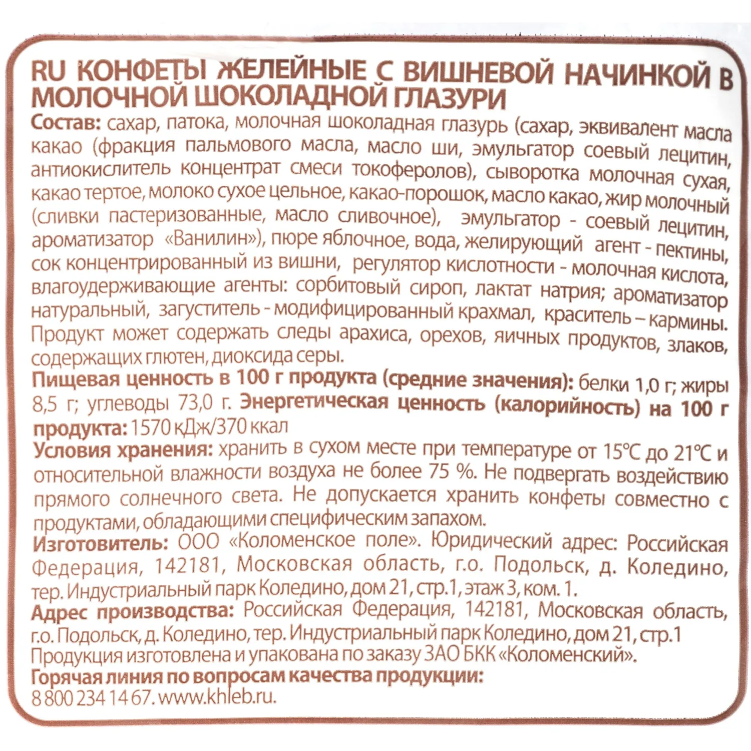 Любые вопросы по товару «Конфеты глазированные Шоколадница Коломенский вишня 1 кг» вы можете задать нашим продавцам по телефонам +7 (495) 215-28-10, 8 (800) 555-3604, электронной почте info@ofsi.ru и в скайпе ofsi.ru.