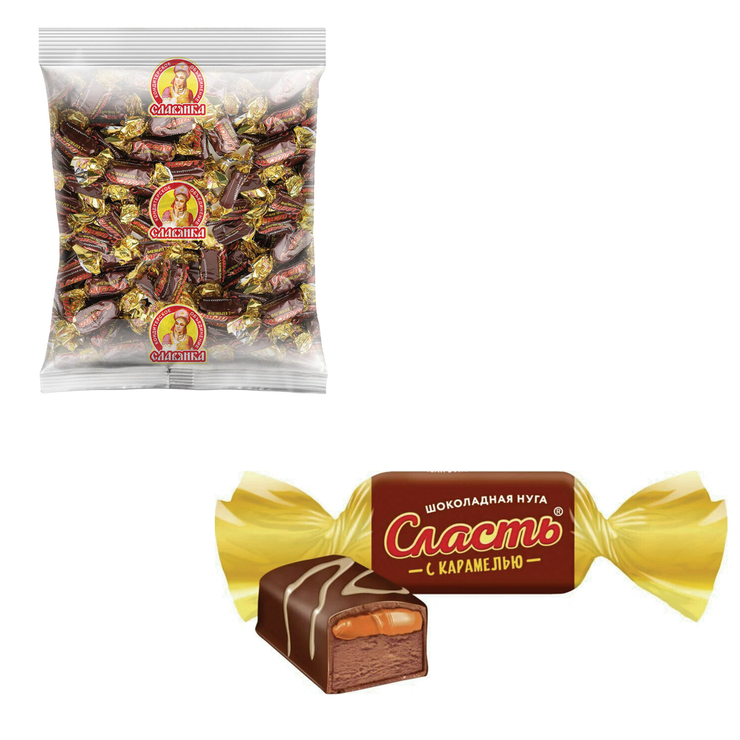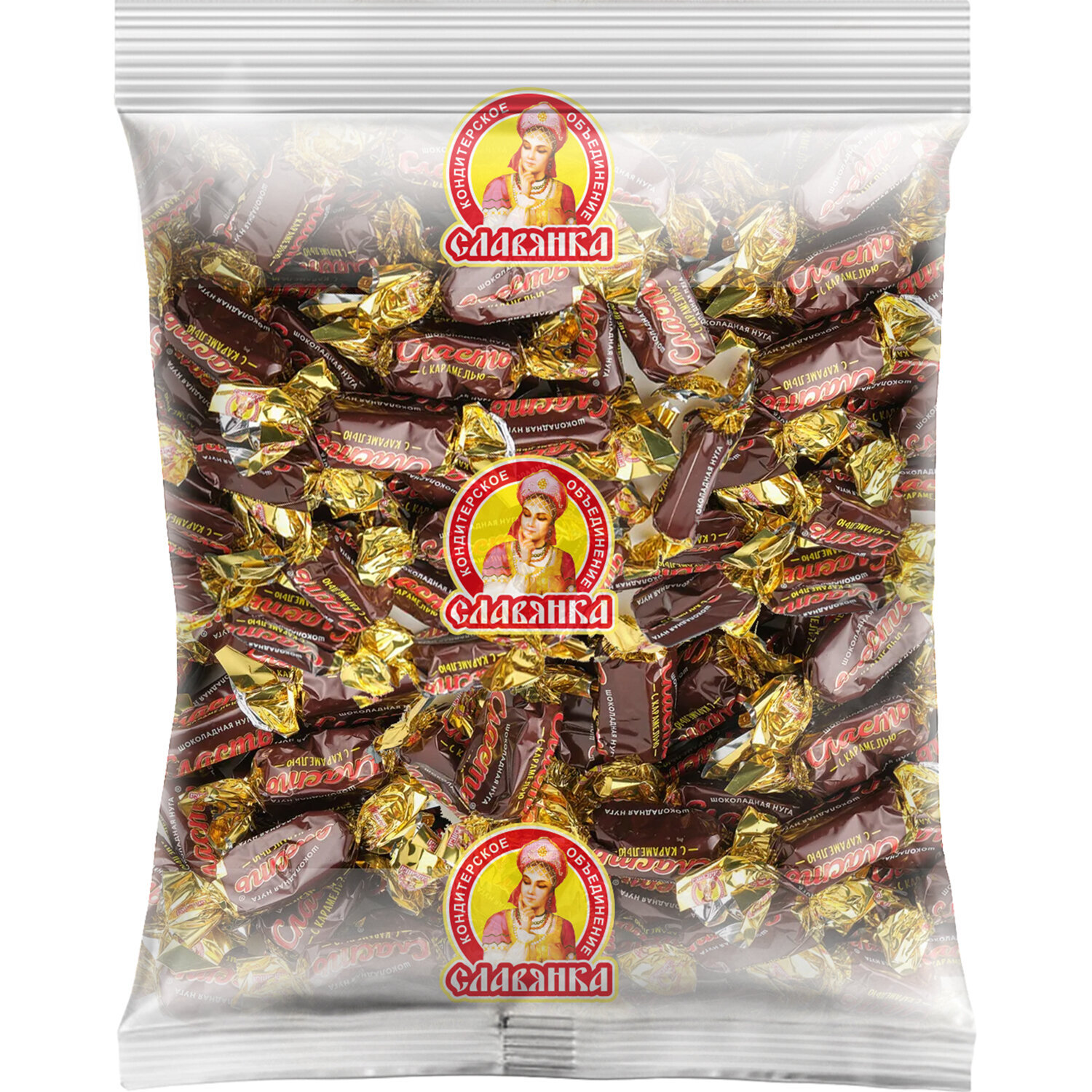 Конфеты глазированные СЛАВЯНКА "Сласть", шоколадная нуга с карамелью, 1000 г, 20523