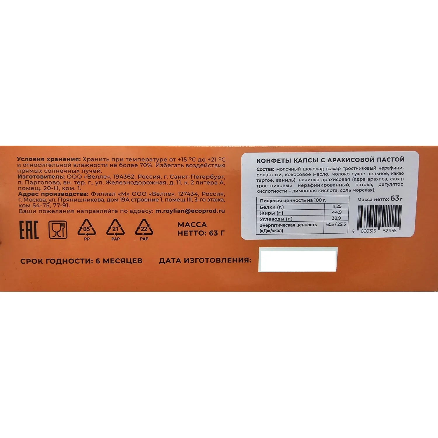 О товаре «Конфеты КАПСЫ шоколадные с арахисовой пастой, 63г»