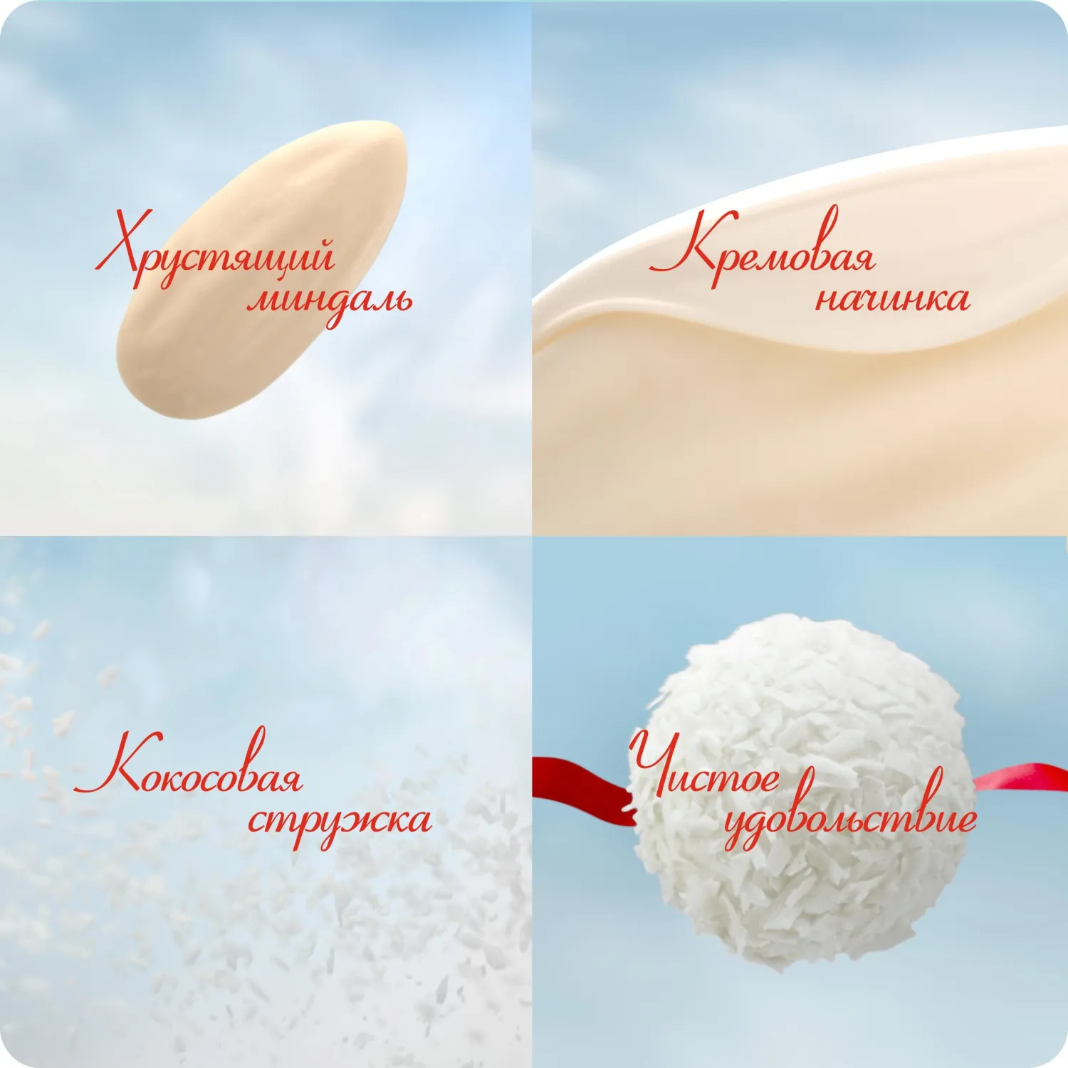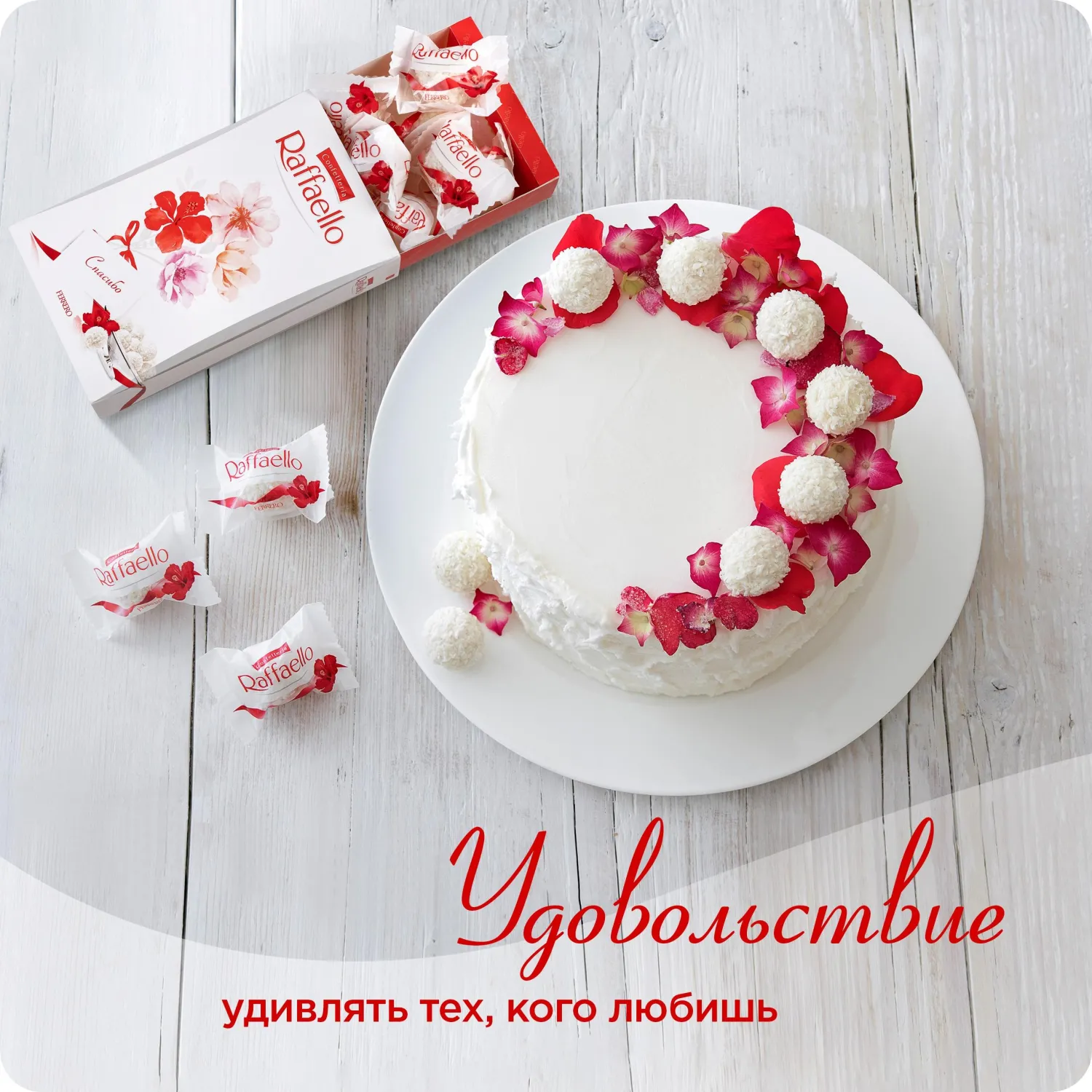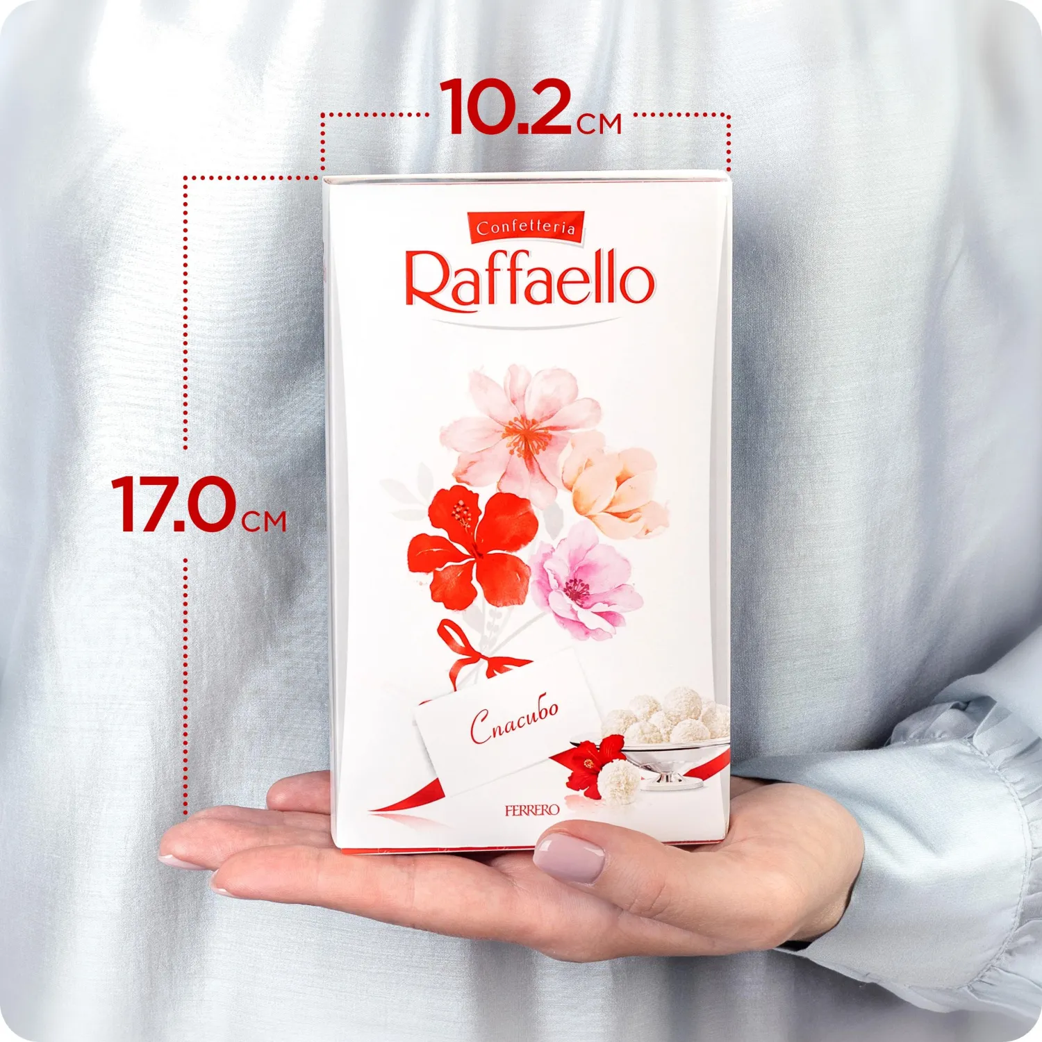 Конфеты Raffaello — лучший подарок для вашего любимого человека. Уникальный вкус Raffaello — это удовольствие и незабываемые впечатления, которыми можно насладиться в кругу близких или просто весело провести время. Белый хрустящий миндаль, покрытый бархатистой кремовой начинкой и посыпанный нежной кокосовой стружкой, придаёт непередаваемую нежность вкусу.