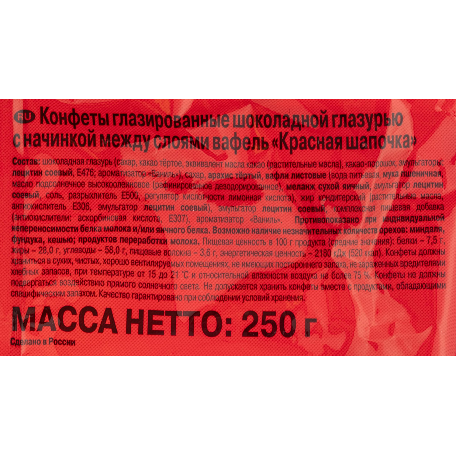 Конфеты шоколадные Красный Октябрь «Красная шапочка» 250 г — это замечательные конфеты, известные не понаслышке каждому сладкоежке. Они созданы из тонких слоев хрустящих вафельных пластин, соединенных ароматным кремом пралине и укрытых волнистой шоколадной глазурью.