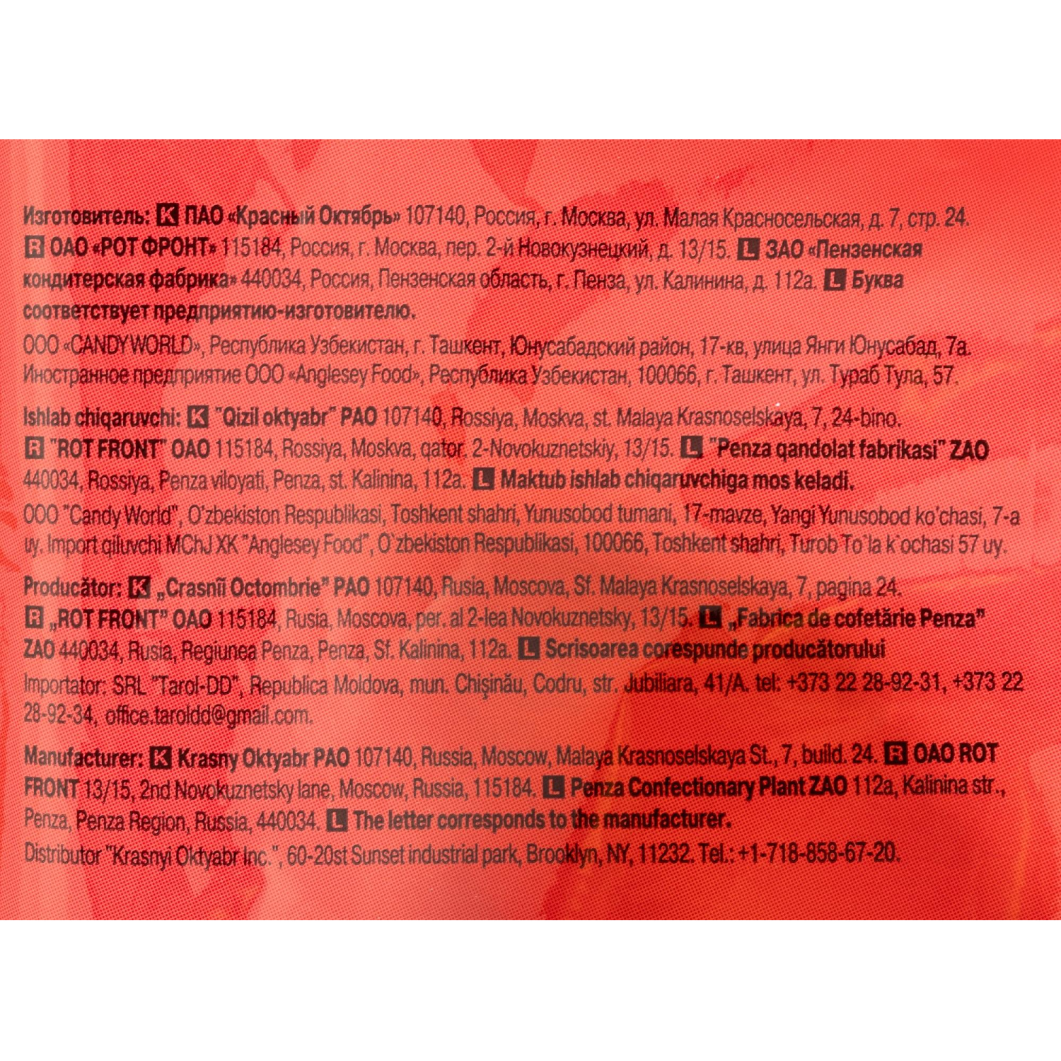 Герметичная упаковка надолго сохраняет свежесть и товарные качества конфет. А сквозь прозрачный пакет можно легко разглядеть знакомые конфетки в традиционном желтом фантике с изображением девочки из любимой сказки.