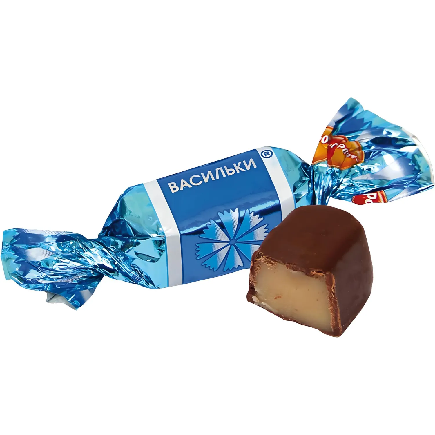 Конфеты «Васильки» — сладкая классика от фабрики «Рот Фронт». Нежная тающая помадка с мягким вкусом крем-брюле и терпкими коньячными нотками, обогащенная тертым орехом кешью, покрытая шоколадной глазурью. Ароматные конфеты, вкус которых знаком с детства нескольким поколениям сластен. Традиционные голубые фантики с блестящими вставками и изображением скромного полевого цветка. Удобная упаковка 250 г.