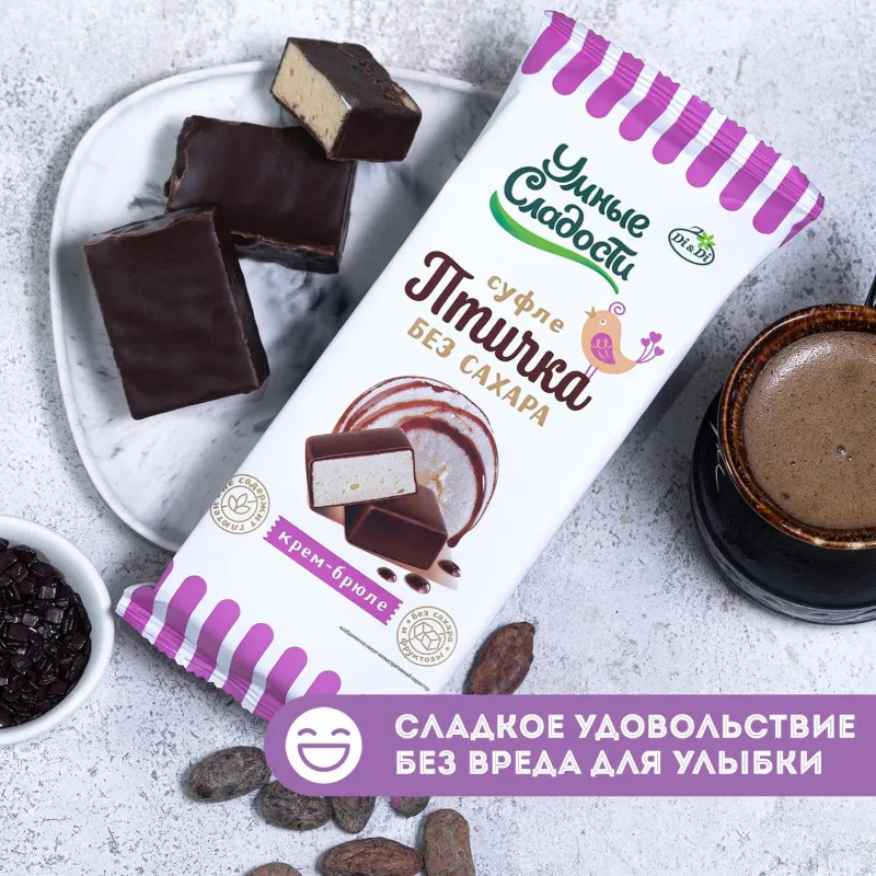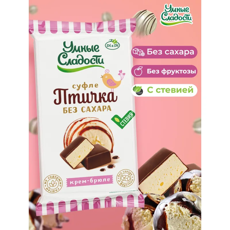 О товаре «Конфеты Умные сладости Птичка крем-брюле без сахара 215 г»