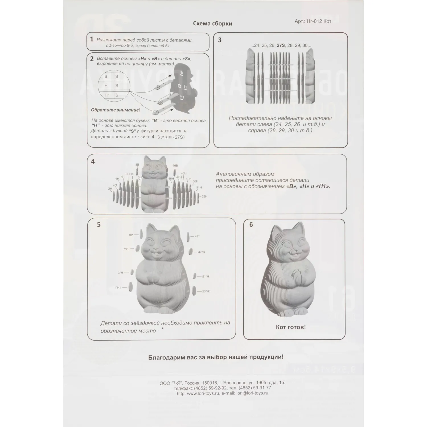 О товаре «Конструктор из картона. Объёмная игрушка Кот, Нг-012»