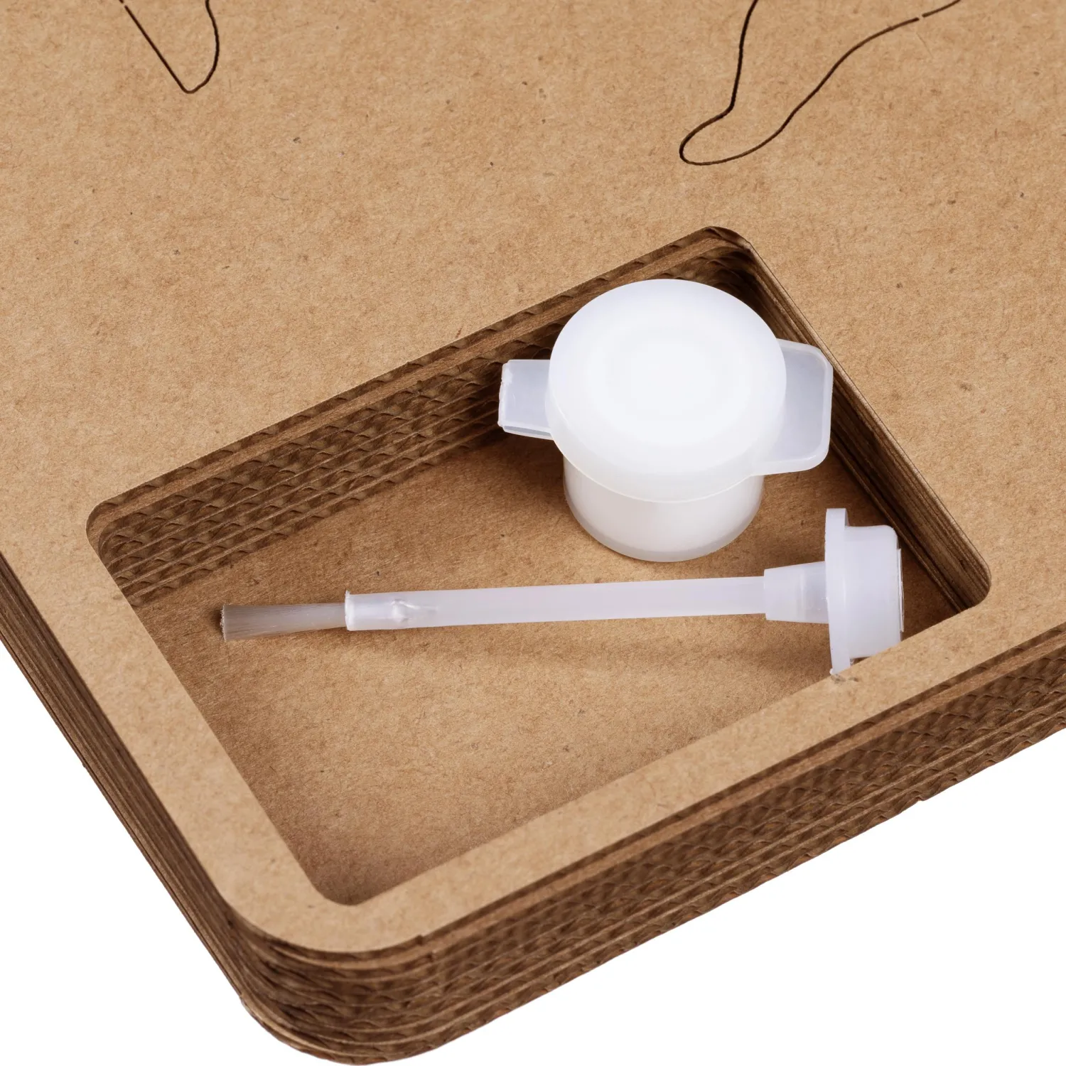 Элементы изготовлены из микрогофрокартона — лёгкого, прочного и экологически безопасного материала. Готовая фигурка может использоваться для сюжетно-ролевых игр или служить украшением детской комнаты. Конструктор рассчитан на детей от 5 лет.
