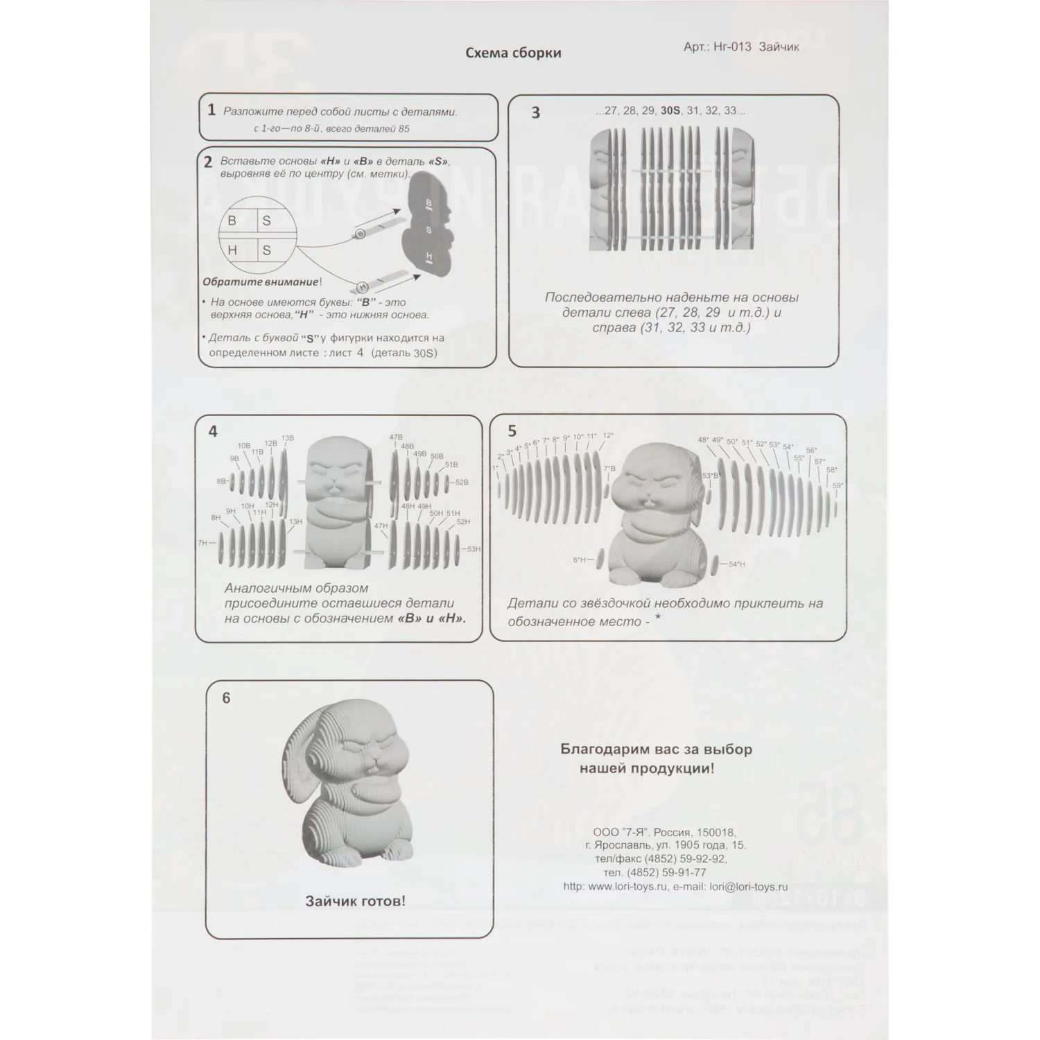 О товаре «Конструктор картонный Lori Объёмная игрушка Зайчик 85 деталей»