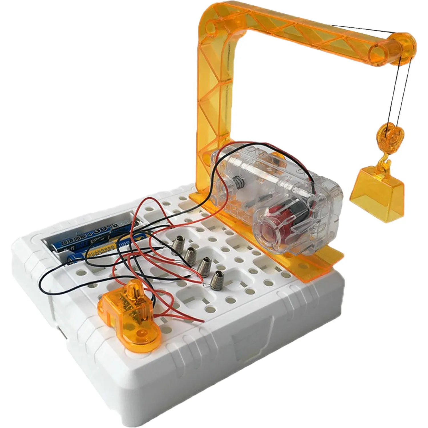 Конструктор ND Play Электронный «Подъемный кран» предназначен для детей от 6 лет. С электронным конструктором ребёнок соберёт собственный подъёмный механизм и научится переносить грузы подвижным краном. Набор продемонстрирует малышу, как электричество превращается в механическое движение. Для начала юному инженеру необходимо точно следовать инструкции и установить мотор, подключить его к панели и правильно соединить провода. Ребёнок будет управлять готовым краном с помощью переключателя. Сдвигая рычажок, он поднимет или опустит груз.