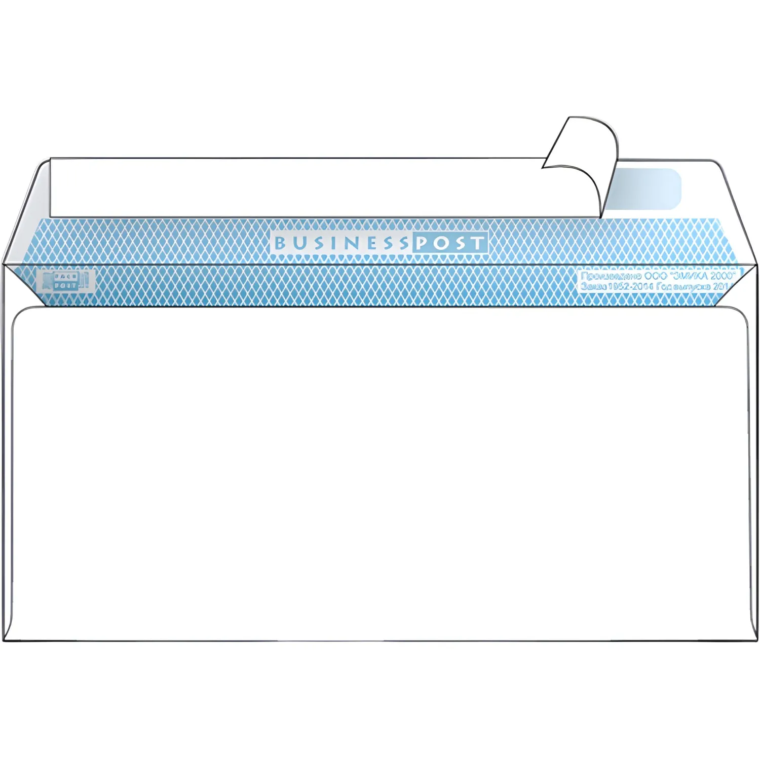 Конверт BusinessPost E65 90 г/кв.м белый стрип с внутренней запечаткой (1000 штук в упаковке) 110×220 мм выполнен из офсета 90 г/кв.м, имеет клеевое нанесение типа стрип (отрывная силиконовая лента). Ширина клапана 15 мм. Предназначены для пересылки 6 листов А4 формата сложенных втрое, что равно 30 г веса. Упакован в короба по 1000 штук. Срок годности 1 год по ГОСТ. Показатель белизны бумаги — 143-149 %.