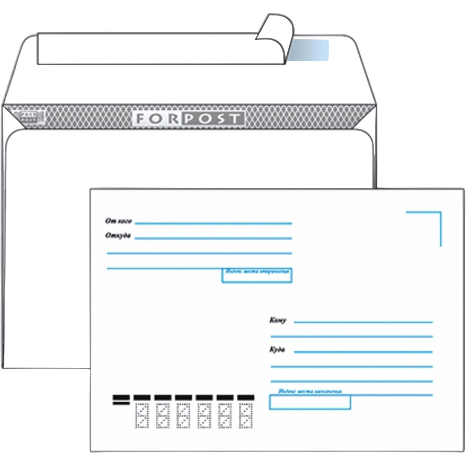 Конверт ForPost C4 90 г/кв.м Куда-Кому белый стрип с внутренней запечаткой (50 штук в упаковке)