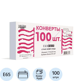 О товаре «Конверт ForPost Е65 80 г/кв.м Куда-Кому белый стрип с внутренней запечаткой (100 штук в упаковке)»
