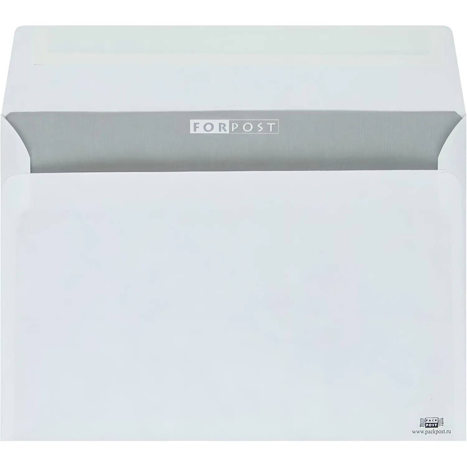 Конверт ForPost С5 80 г/кв.м Куда-Кому белый стрип с внутренней запечаткой (1000 штук в упаковке) 162×229 мм выполнен из офсета 80 г/кв.м, имеет клеевое нанесение типа стрип (отрывная силиконовая лента) и почтовый подсказ ’Куда-Кому’. CIE. Предназначены для пересылки 20 листов А4 формата сложенных вдвое, что равно 100 г веса. Упакован в короба по 1000 штук. Срок годности 1 год по ГОСТ. Показатель белизны бумаги — 143-149 %.