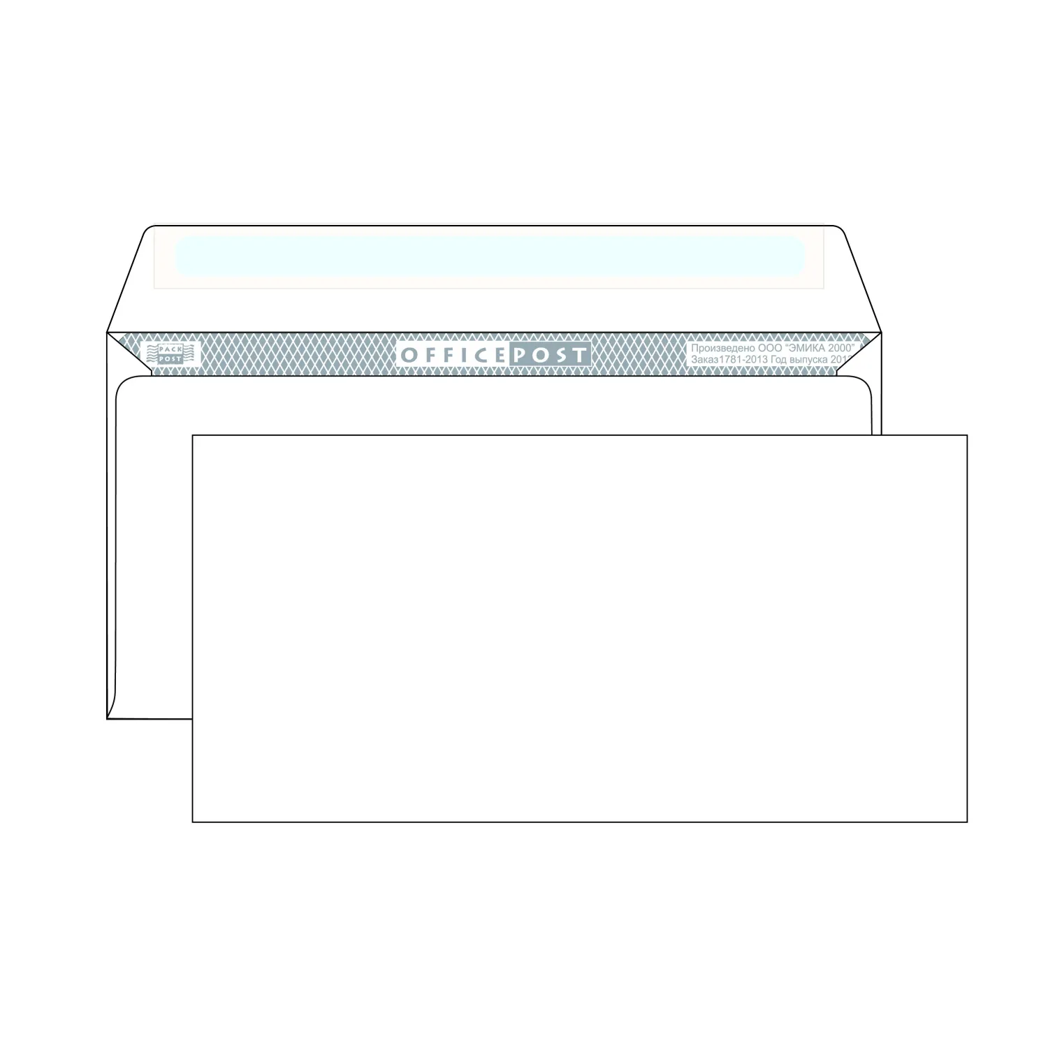 Конверт OfficePost E65 80 г/кв.м белый стрип с внутренней запечаткой (100 штук в упаковке)