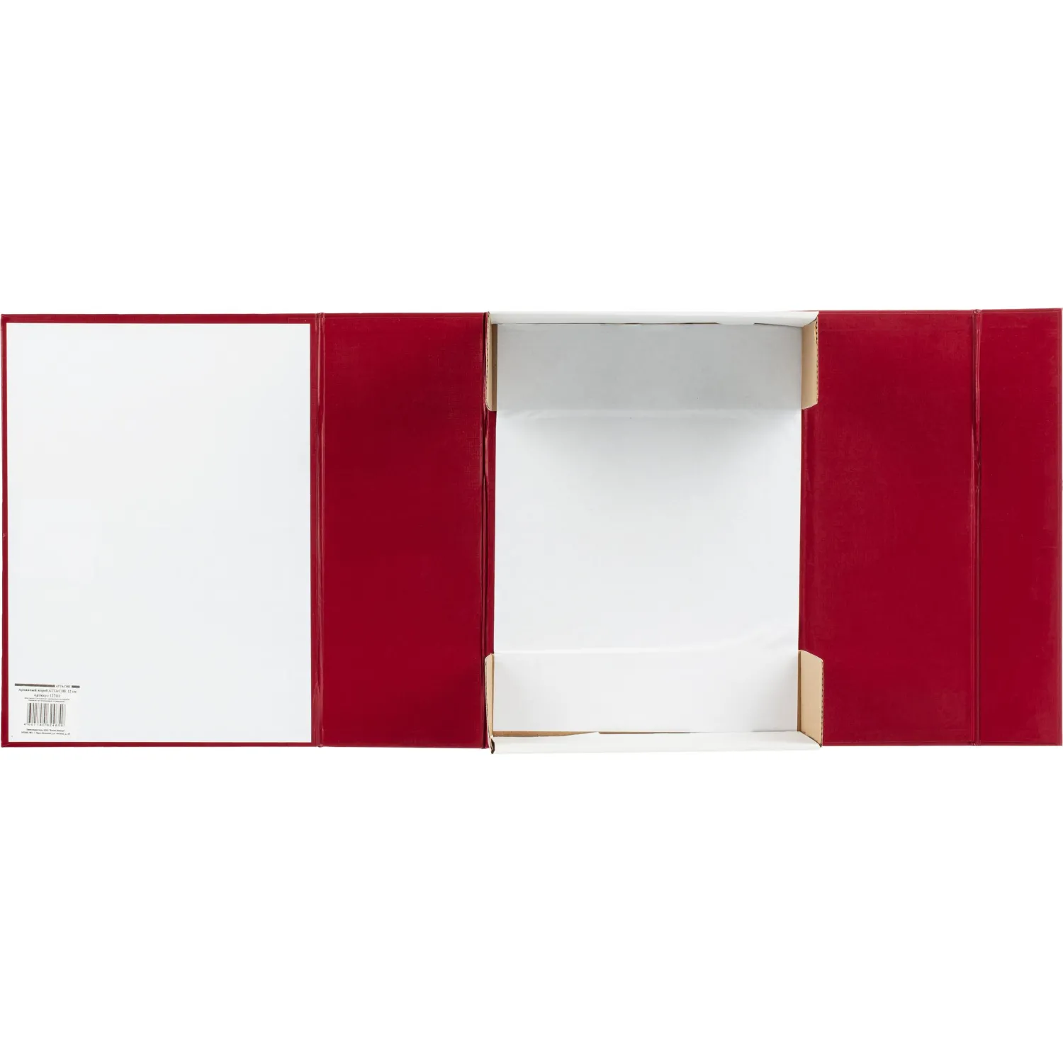 Складной архивный короб Attache формата А4 изготовлен из переплетного картона, снаружи покрыт бумвинилом красного цвета (материал на основе ПВХ). В закрытом виде фиксируется с помощью двух хлопчатобумажных завязок. Внутренние
