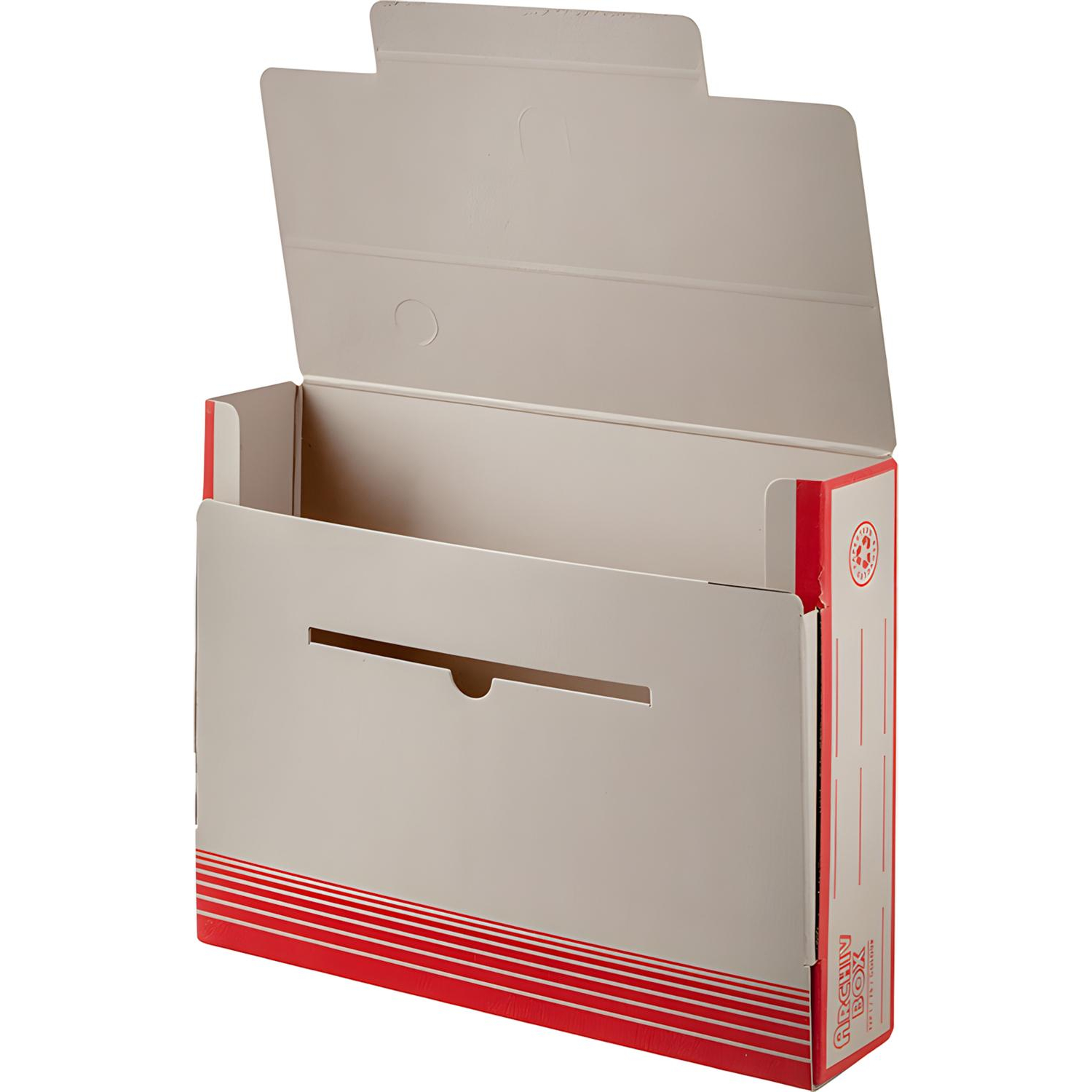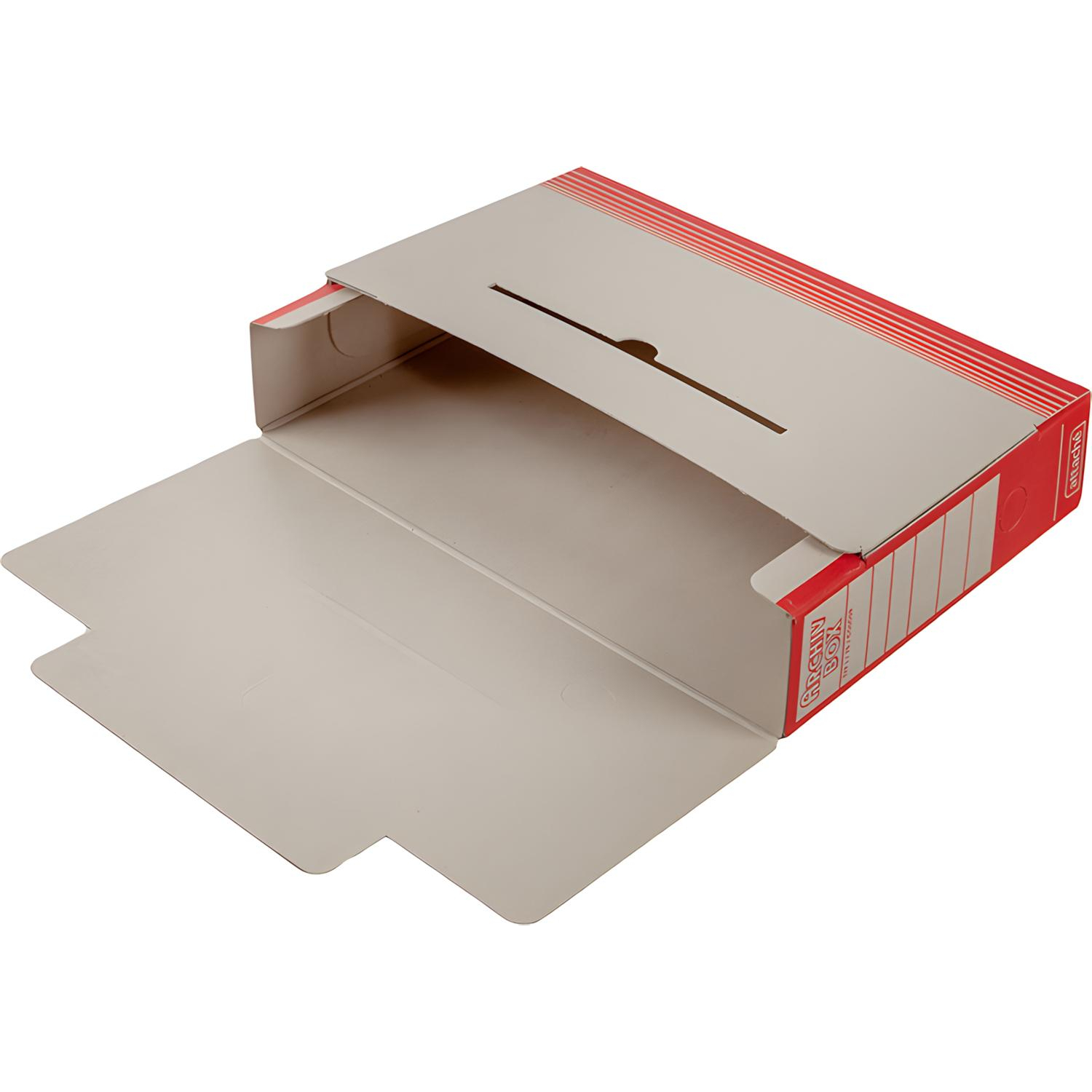 Короб архивный Attache изготовлен из переплетного картона бежевого цвета с красным рисунком. Предназначен для краткосрочного хранения документации.