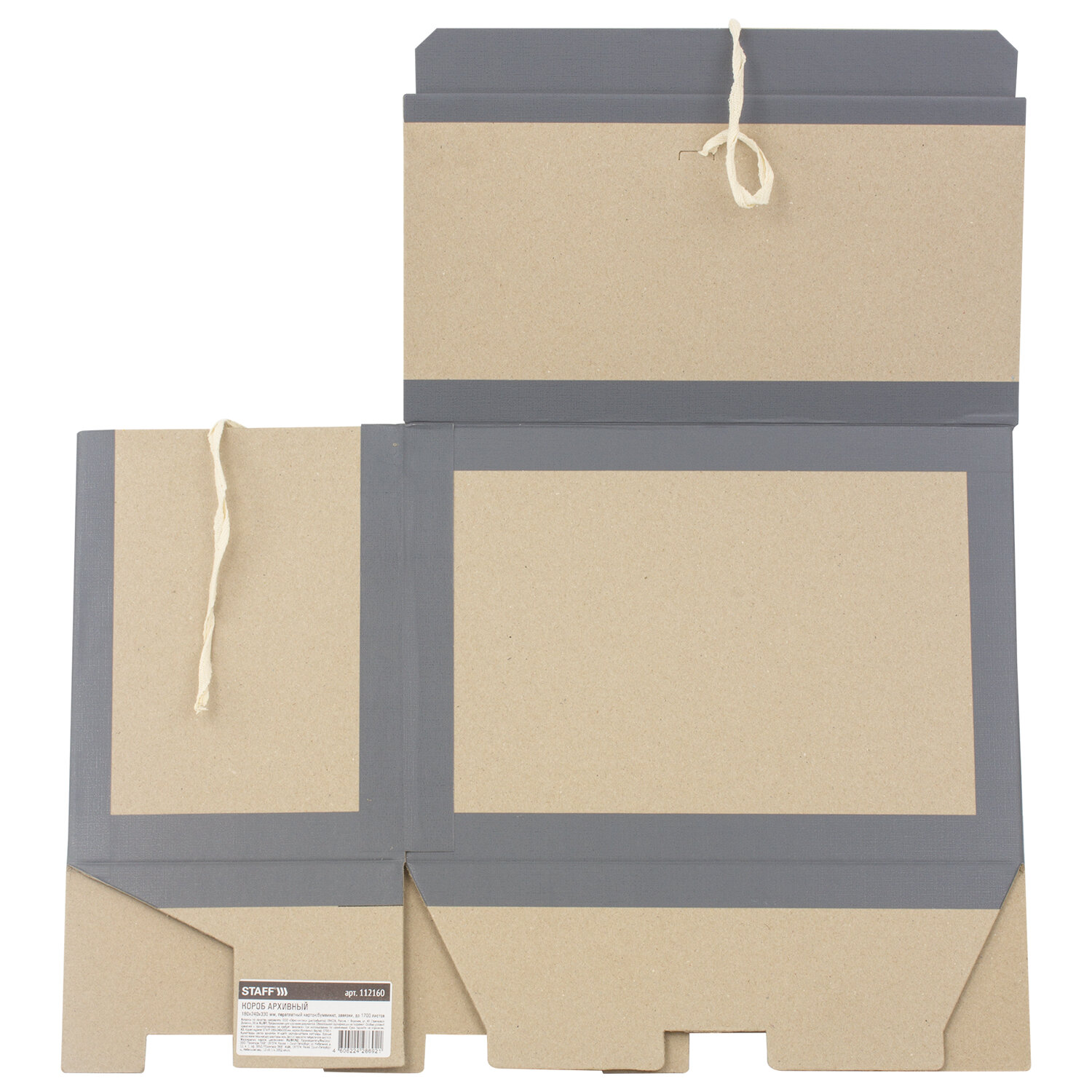 Короб архивный 180х240х330 мм, переплетный картон/бумвинил, завязки, до 1700 л., STAFF, 112160