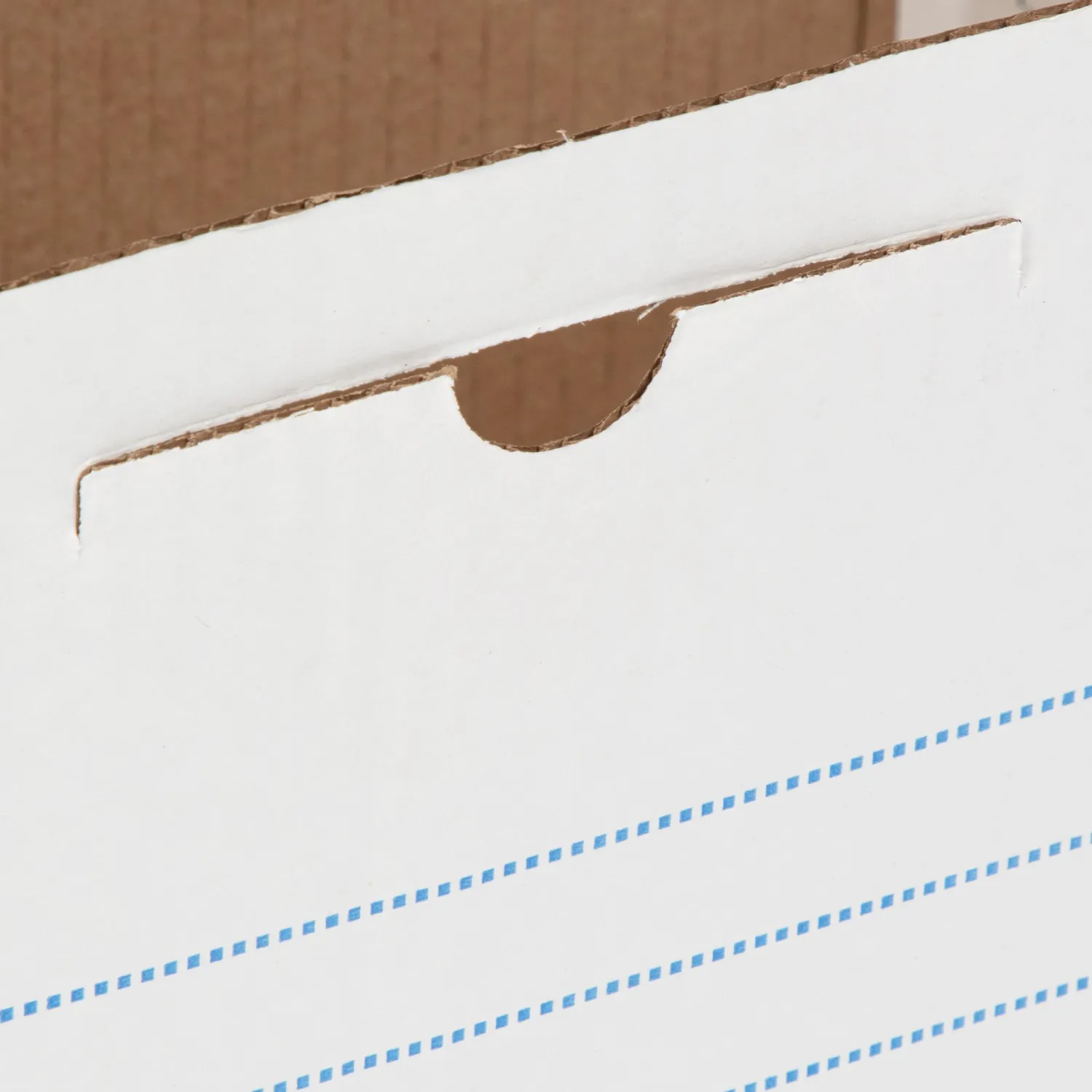 Возможно вертикальное и горизонтальное размещение, на стеллажах или в архивных коробах. Удобное кольцо на корешке для захвата. На боковых сторонах имеются поля для надписей.