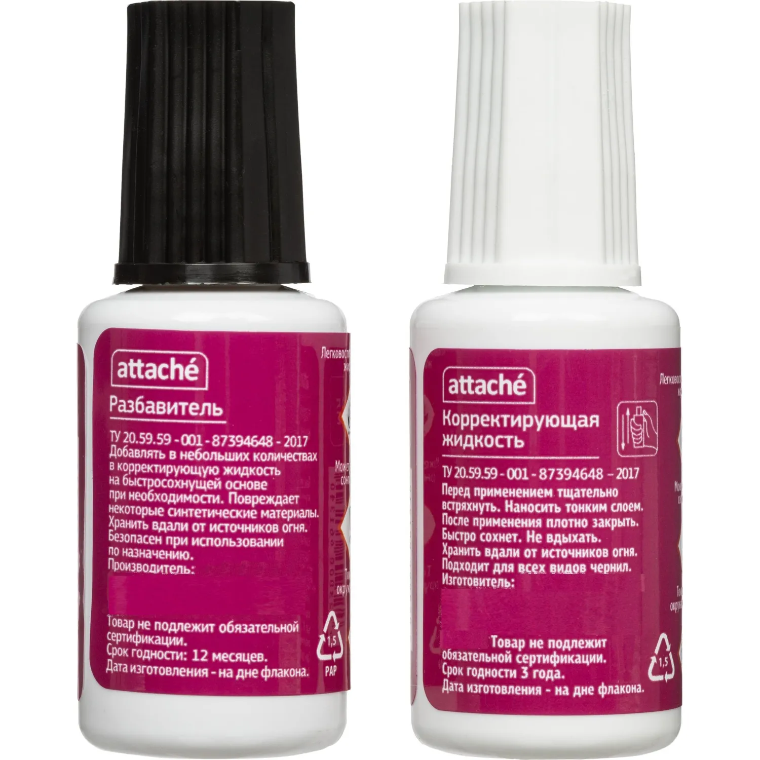 О товаре «Набор корректирующая жидкость (штрих) быстросохнущая и разбавитель Attache 2x20 мл»