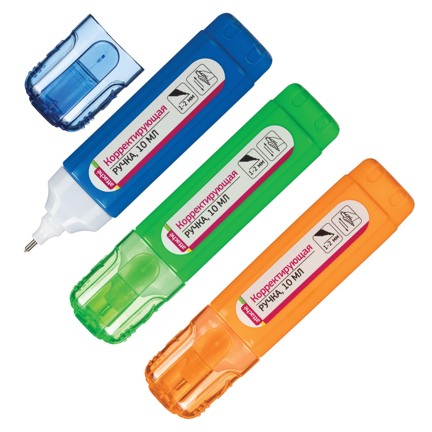 Корректирующий карандаш Attache предназначен для точечных исправлений на любых типах бумаги. Данный вид корректировки особенно удобен, если Вам нужно исправить небольшой объем текста или даже самую маленькую помарку. Идеально подходит для студентов и старших школьников. Объем флакона - 10 мл. Металлический наконечник позволяет наносить тонкие линии. Содержит быстросохнущую основу, обладает высокой кроющей способностью. 1. Перед применением тщательно встряхните средство в течение не менее 10 секунд, затем снимите колпачок. 2. Прижмите наконечник ручки к поверхности бумаги. 3. Нажмите на корпус ручки для подачи корректирующего средства и равномерно нанесите его на бумагу. 4. После применения плотно закройте колпачок. Внимание! Товар поставляется в нескольких вариантах дизайна/цвета корпуса (без возможности выбора).
