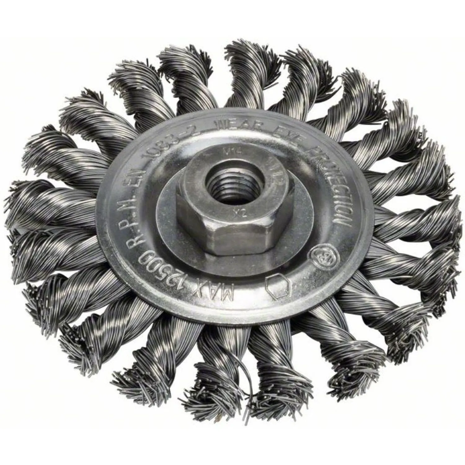 Щётка для УШМ Bosch дисковая 115 мм M14 витая стальная проволока (2609256512)