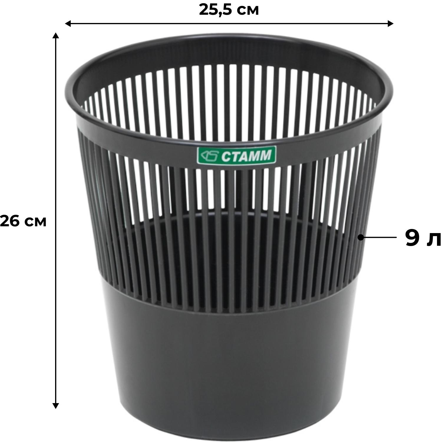 Корзина для мусора и бумаг Стамм 9 л пластик сетчатая черная (26×25.5×25.5 см).