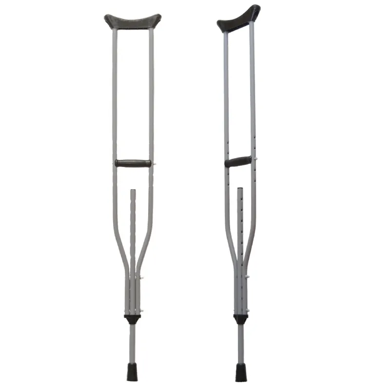 Костыли с подмышечной опорой предназначены для дополнительной опоры и облегчения передвижения людей, имеющих травмы и заболевания нижних конечностей. Стойки и ножки костылей изготовлены из стального проката, подмышечник и ручка из пластмассы. В качестве защитного покрытия используется порошковое напыление. Резиновый наконечник имеет внутренний диаметр 19 мм, внешний 40 мм. Для регулирования высоты ручки костыля необходимо: разобрать болтовое соединение ручки со стойками, переставить ручку на требуемую высоту, собрать болтовое соединение. Шаг перестановки ручки — 35 мм. Для регулирования высоты ножки костыля необходимо: разобрать болтовое соединение ножки со стойками, переставить ножку на требуемую высоту, собрать болтовое соединение. Шаг перестановки ножки — 35 мм. Вес пары костылей — 2,50 кг.