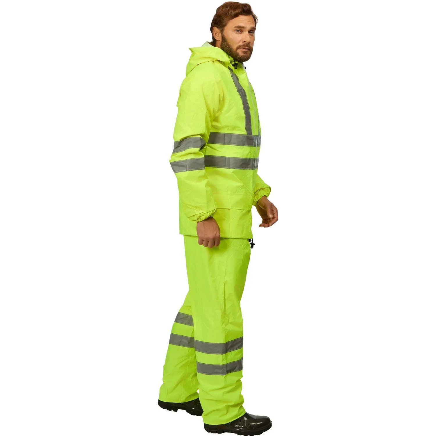 Влагозащитный костюм Extra-V-КБР изготовлен из прочной плащевой ткани с ПВХ-покрытием. Изделие представлено в лимонном цвете с широкой светоотражающей полосой 50 мм. Плотность ткани составляет 225 г/кв.м. Водоупорность — более 5000 мм водяного столба. Костюм соответствует европейским экологическим стандартам.