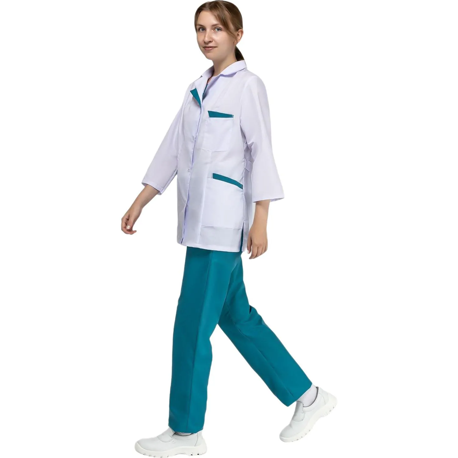 Костюм медицинский женский м01-КБР белый/бирюзовый (размер 52-54, рост 170-176)