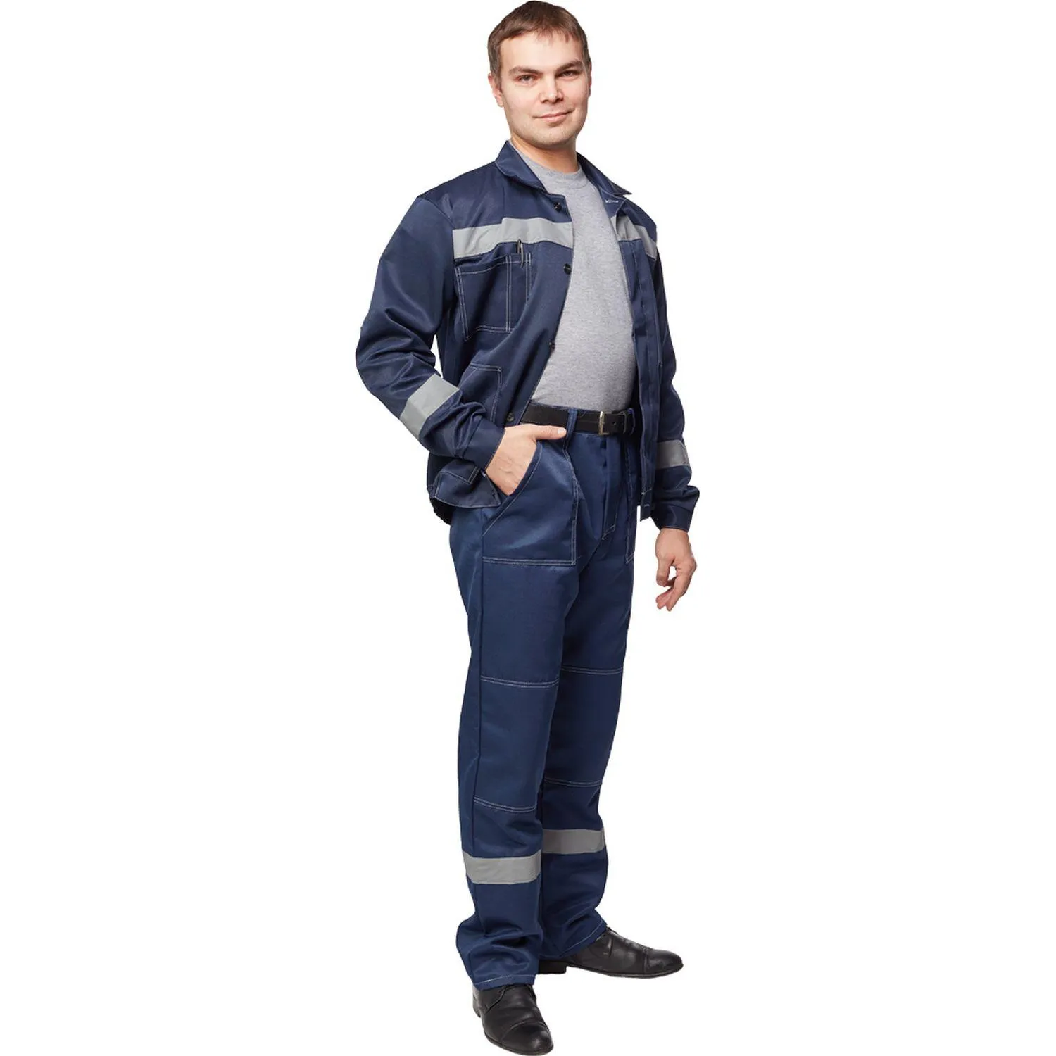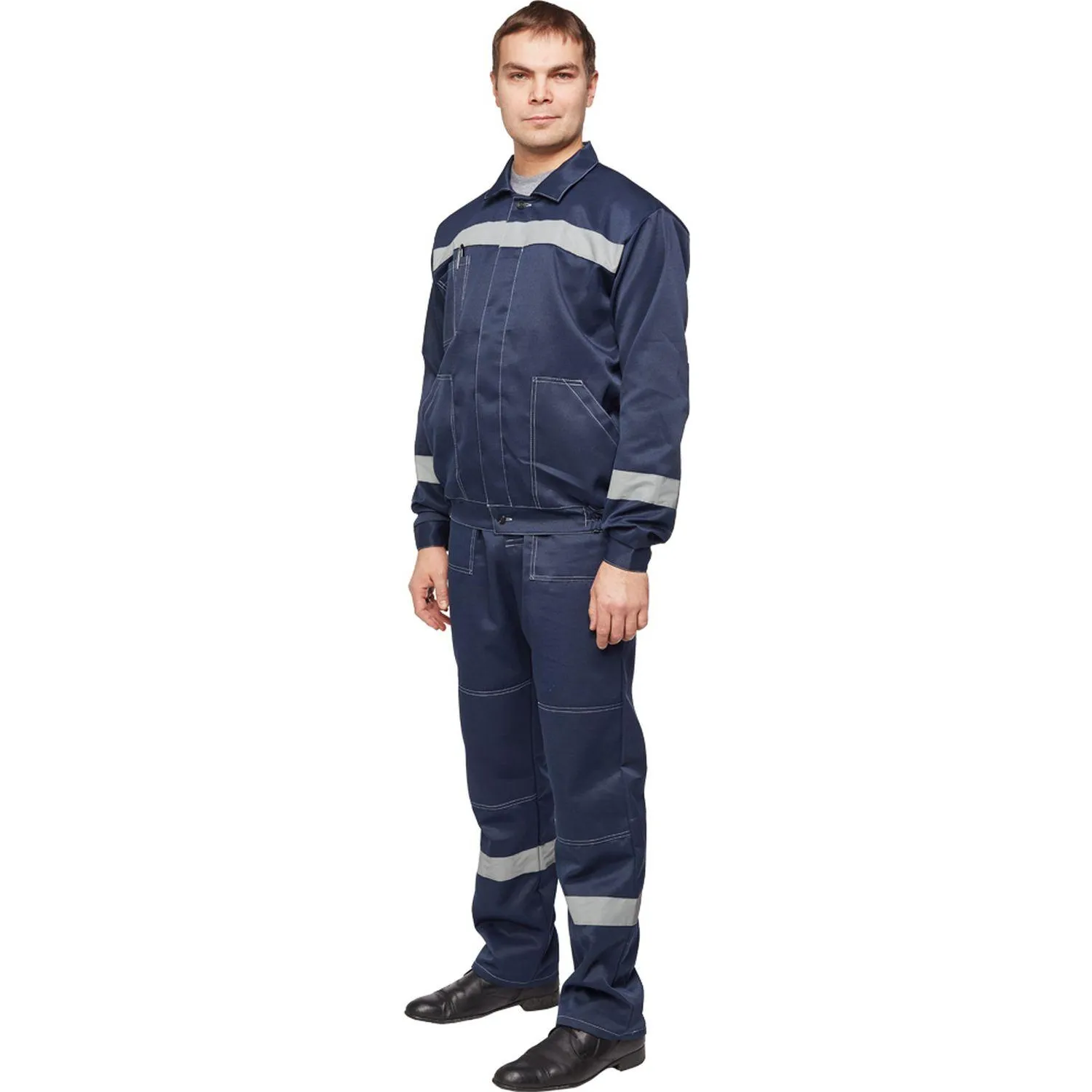 Костюм рабочий летний мужской Л22-КБР с СОП тёмно-синий (размер 48-50, рост 182-188). Состоит из куртки и брюк. Костюм предназначен для использования в сферах логистики, строительства, ЖКХ, сельского хозяйства, лёгкой промышленности и озеленения.