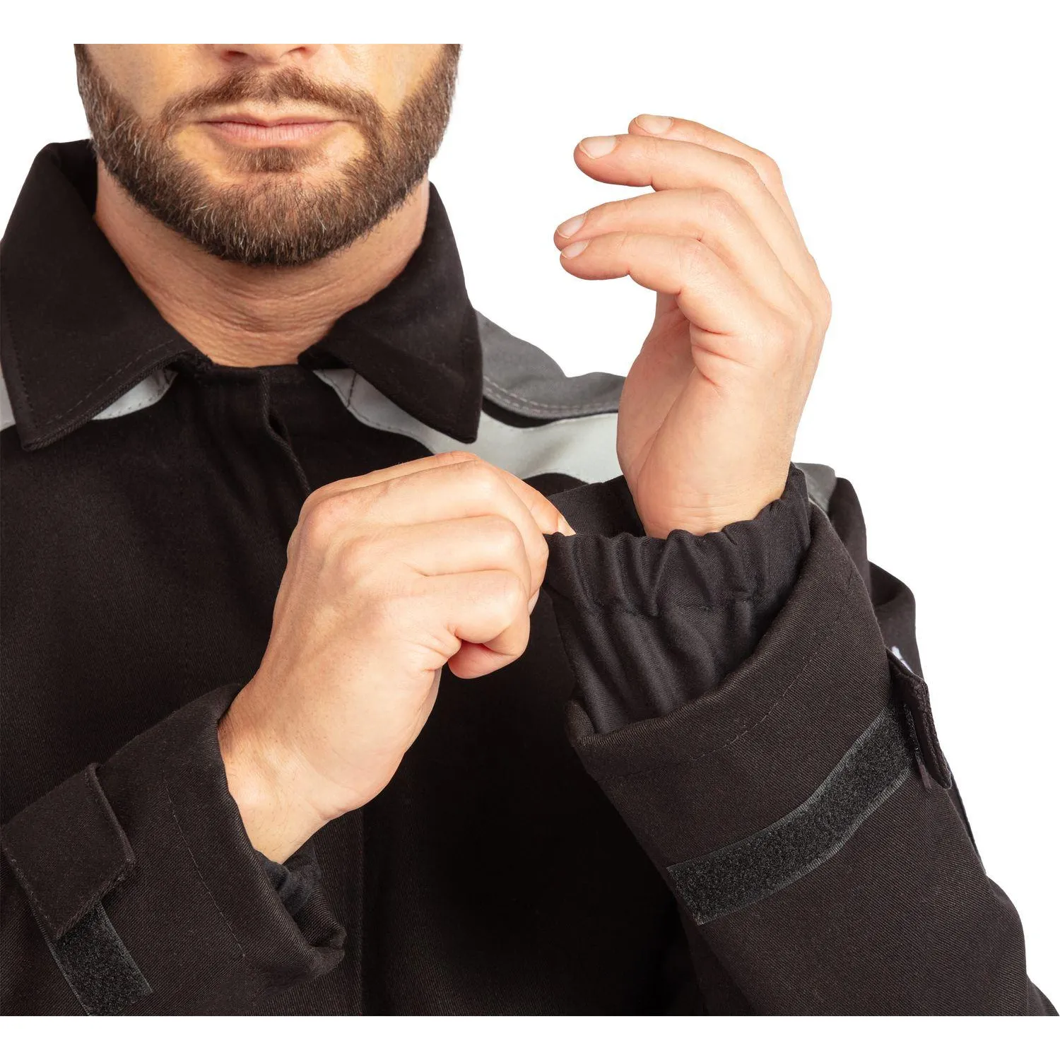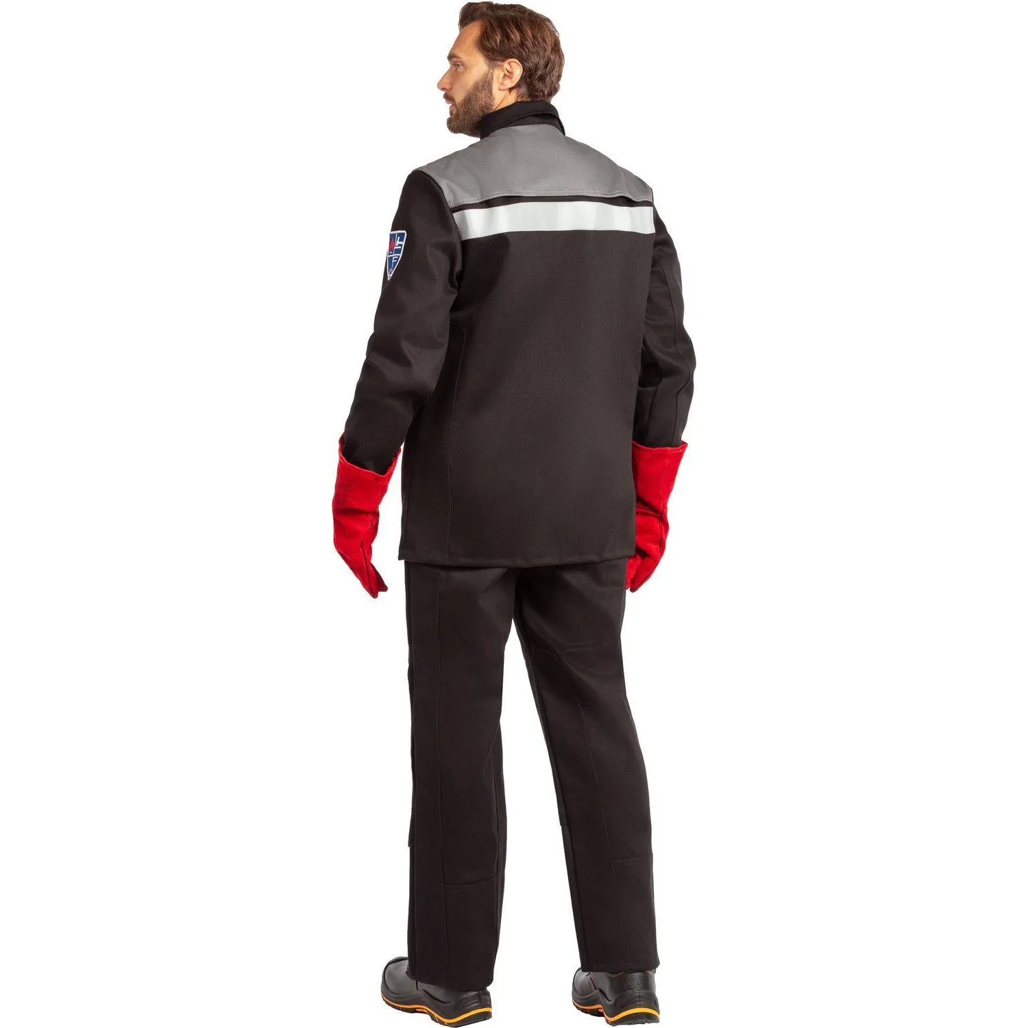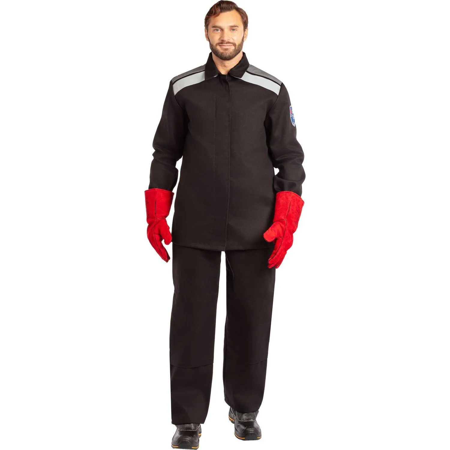 Костюм предназначен для защиты сварщиков от воздействия высоких температур, искр и брызг расплавленного металла при выполнении сварочных и термически опасных работ в летний период. Комплект сочетает комфорт и высокий уровень защиты, обеспечивая безопасность при сохранении удобства движений. Цвет: чёрный.