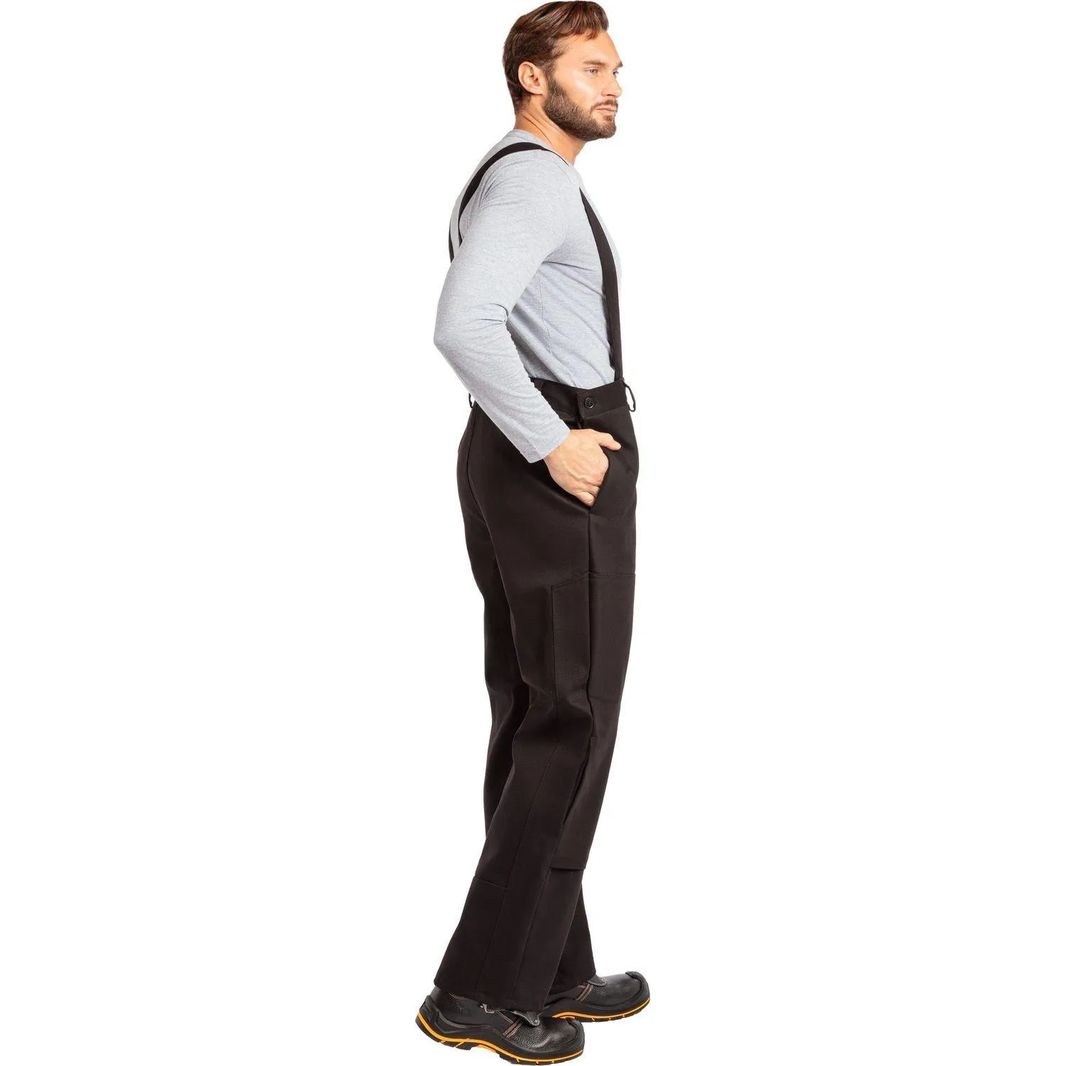 Брюки прямого кроя со съёмными бретелями. В области колен предусмотрен карман для амортизационных вкладышей с вертикальным входом со стороны бокового шва. Основные карманы расположены в боковых застёжках. Вентиляционные отверстия находятся в вершинах шаговых швов. Дополнительные защитные накладки расположены на передних и задних половинках брюк, по боковым и шаговым швам, а также по низу задних половинок.