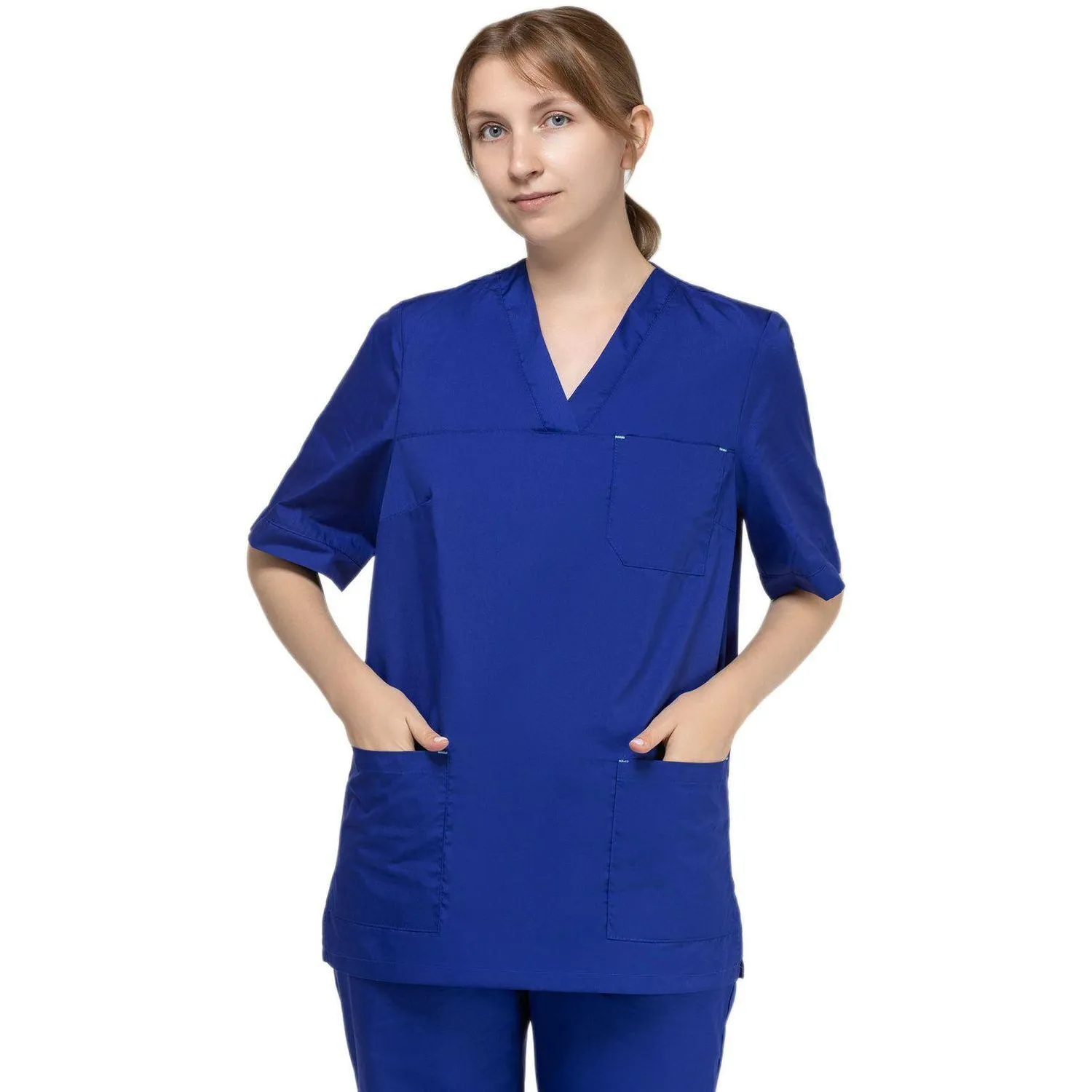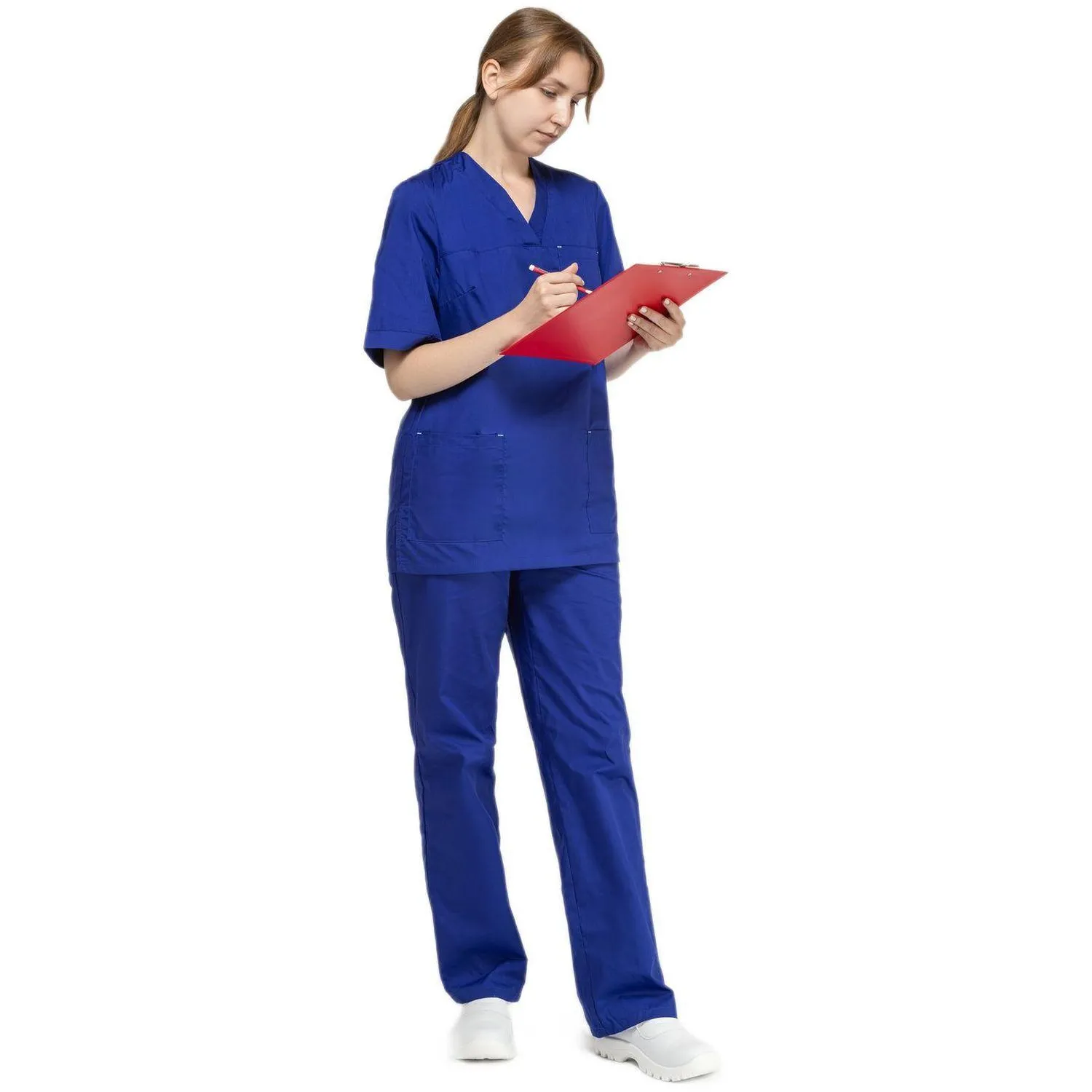 Униформа рекомендована для сферы красоты и здоровья: медицинские учреждения, центры. Костюм хирурга женский м05-КБР василькового цвета состоит из блузы и брюк. Модель изготовлена из смесовой ткани Ти-Си плотностью 120 г/кв.м, состоящей на 65% из полиэфира и на 35% из хлопка. Не мнется, легко и быстро стирается, быстро сохнет. Долго сохраняет свой первоначальный яркий цвет. Ткань «дышит», благодаря входящему в состав хлопку, имеет повышенный срок службы и проста в уходе, благодаря полиэфиру.