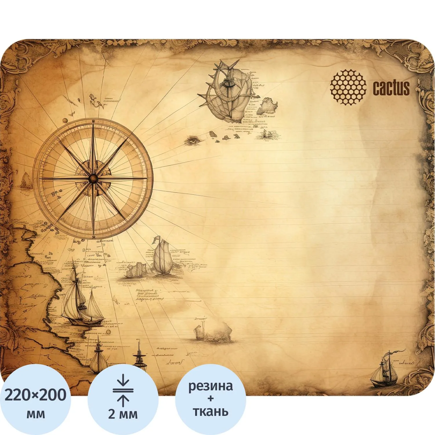 О товаре «Коврик для мыши Cactus Antique map 220x180x2мм (CS-MP-P08XS)»