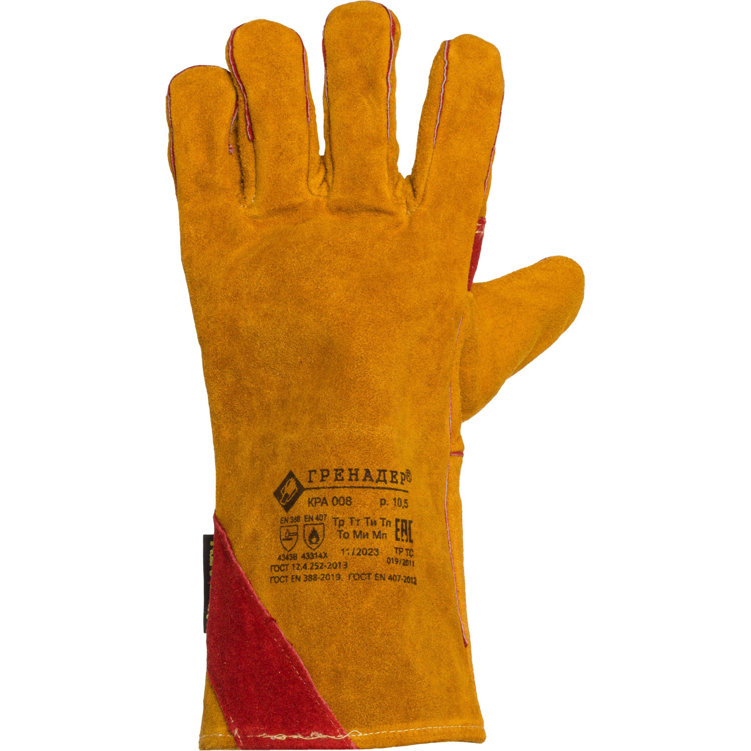 Краги сварщика спилковые усиленные Гренадер на флисовой подкладке пятипалые желтые