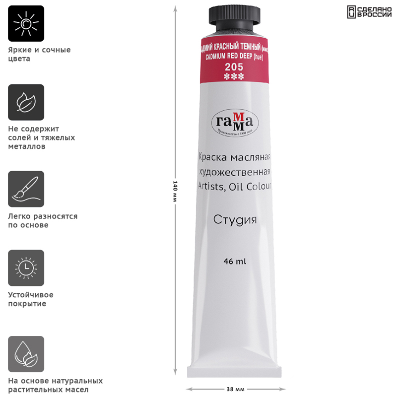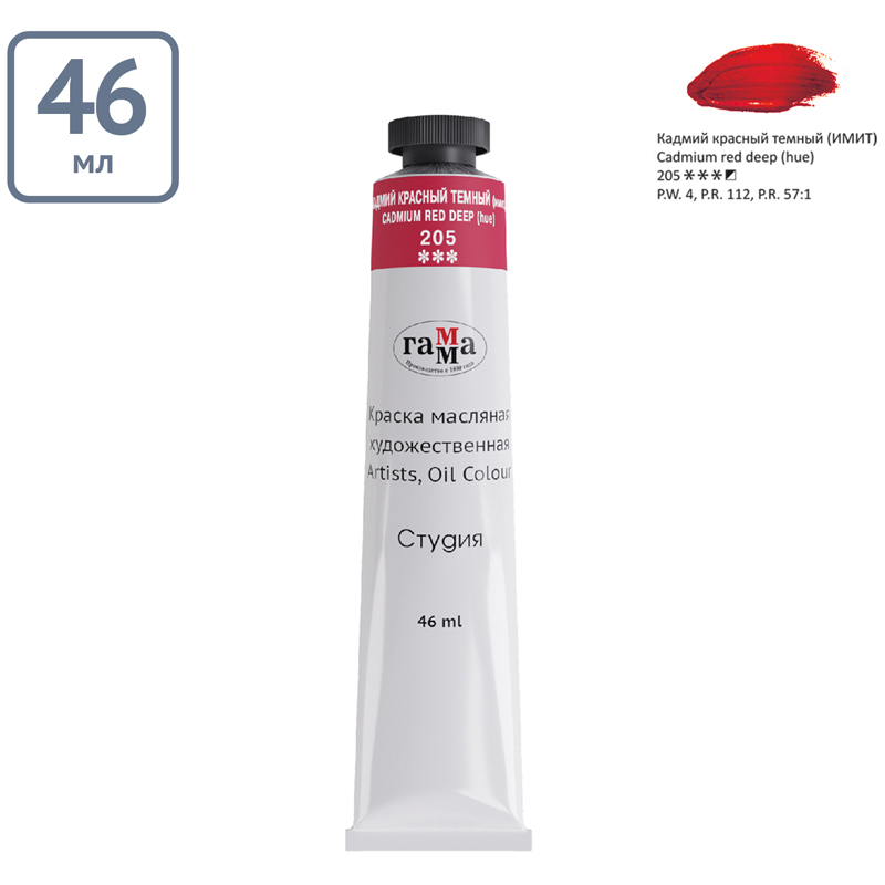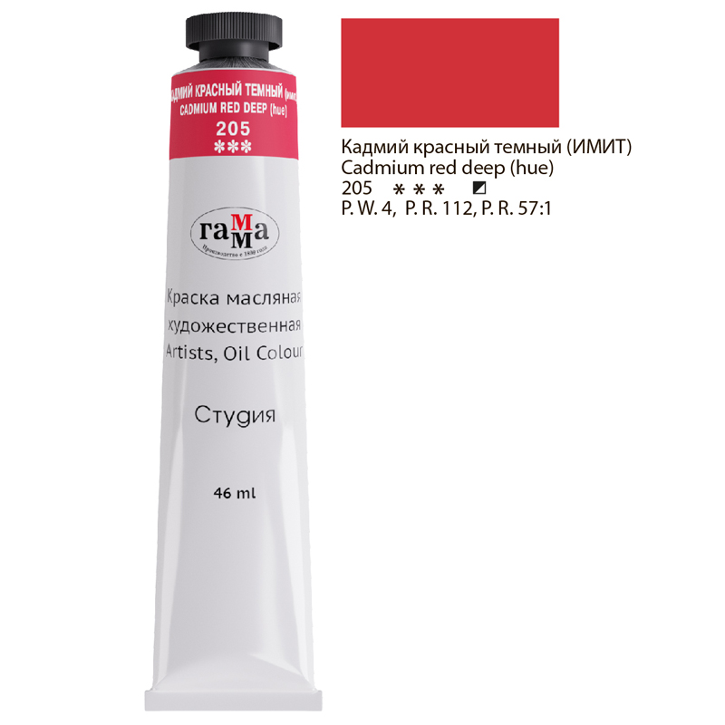 О товаре «Краска масляная художественная Гамма "Студия", 46мл, туба, кадмий красный темный (имит.)»