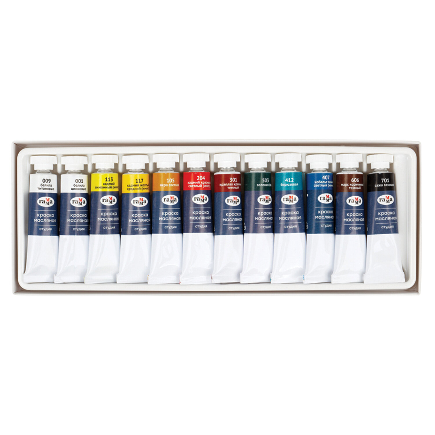 Краски масляные Гамма Студия набор 12 цветов по 9 мл в тубах
