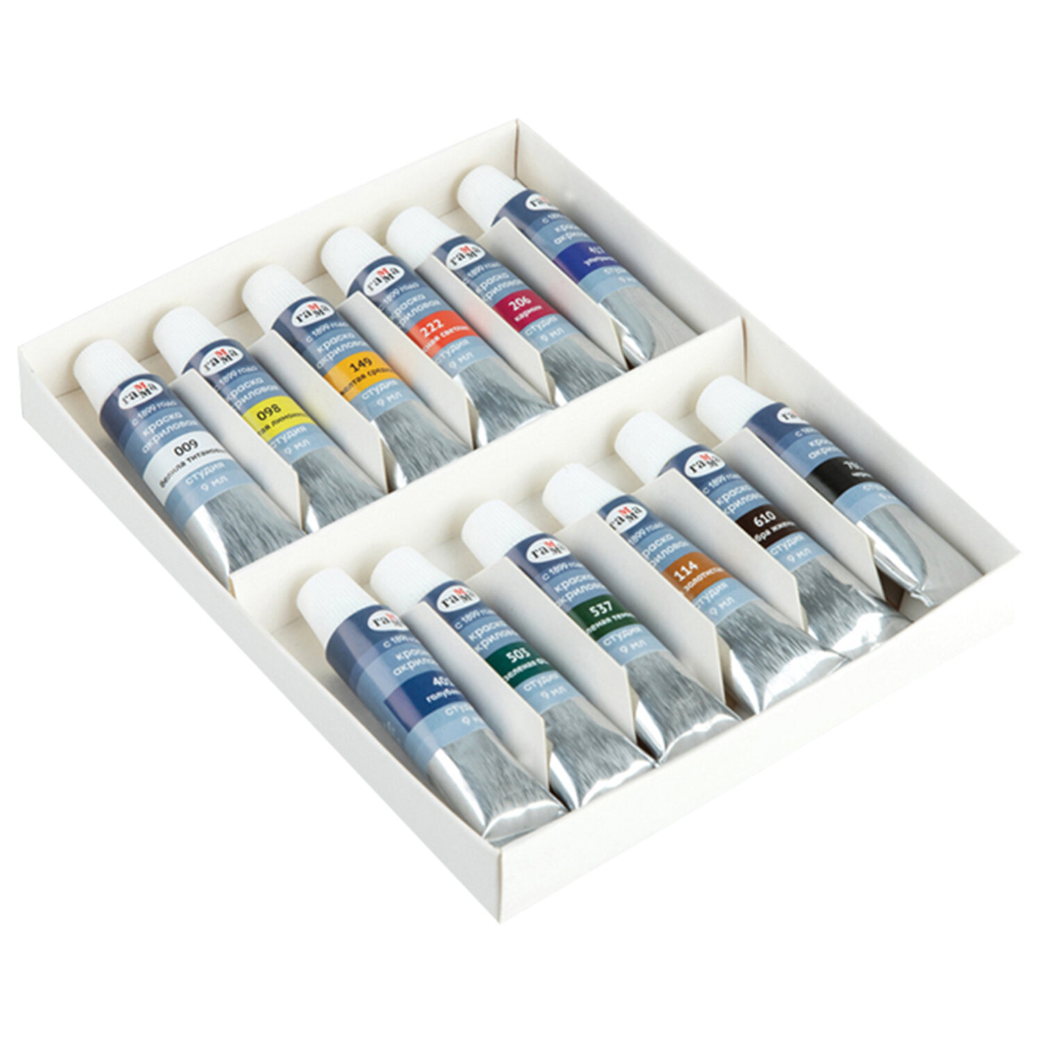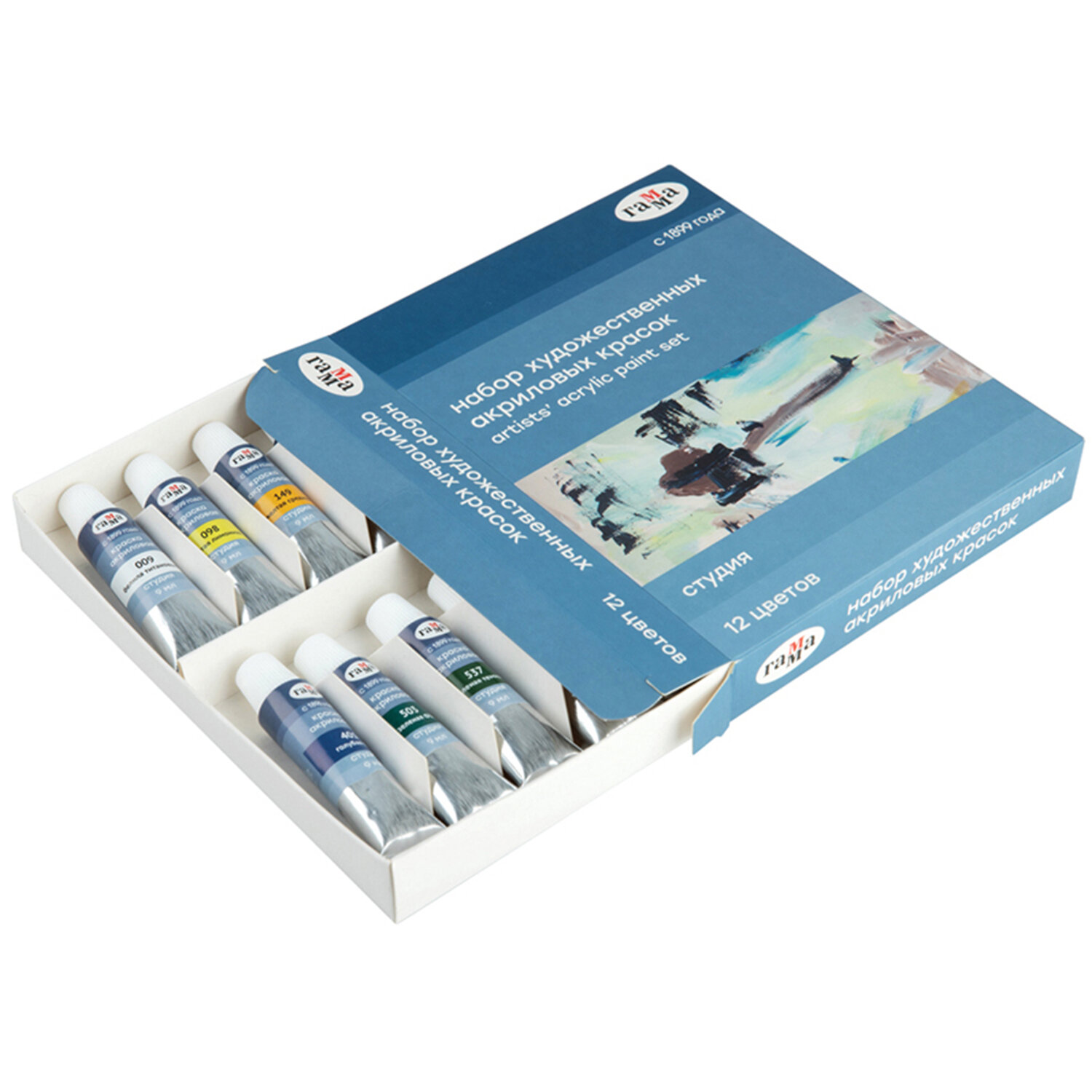 Краски акриловые художественные ГАММА "Студия", 12 цветов, туба 9 мл, картонная упаковка, 15032021