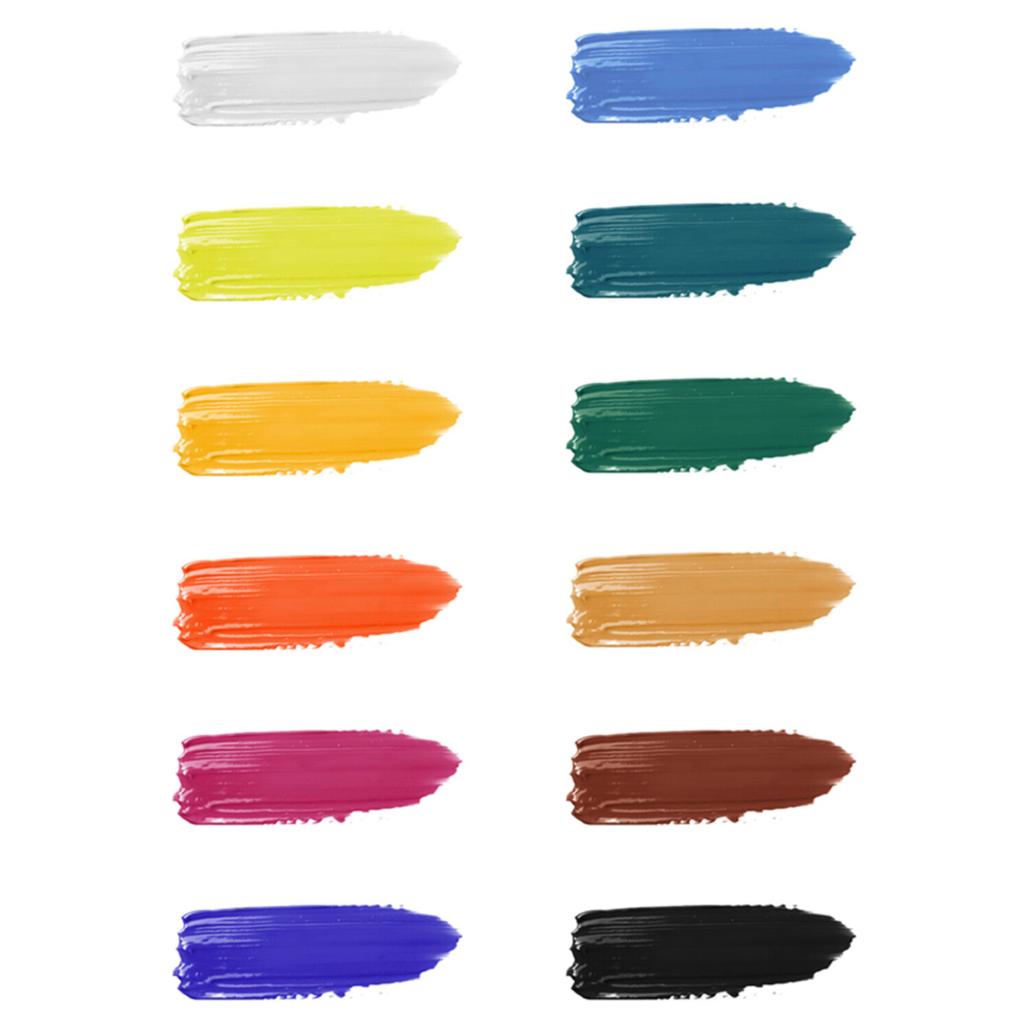 Набор новых акриловых красок серии «Студия» предназначен для художественно-живописных и декоративно-прикладных работ. Главные отличия: насыщенные цвета, высокая адгезия, прочность красочного слоя. После высыхания краски становятся глянцевыми, практически не темнеют, специальная добавка позволяет максимально раскрыть красоту цветов. Художественный акрил прекрасно разносится, подходит для бумаги, картона, грунтованного холста, дерева, стекла, кожи, ткани. Время высыхания: от 10 минут до 1 часа в зависимости от толщины слоя. В упаковке 12 цветов. Объём тубы — 9 мл.
