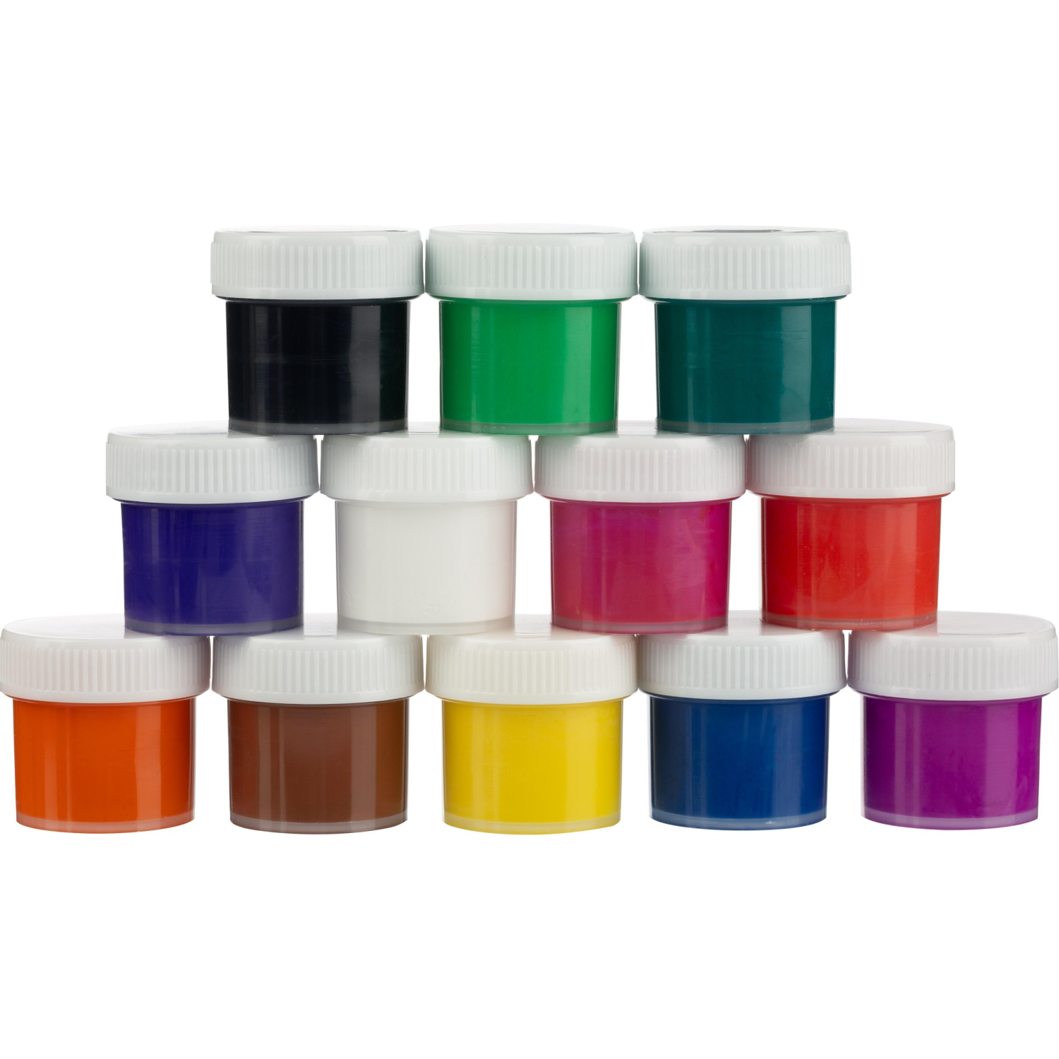 Краски устойчивы к выгоранию и долго сохраняют свою яркость. В жидком виде они разбавляются водой, но после высыхания образуют прочное несмываемое покрытие. Эластичный и прочный красочный слой делает их идеальными для декоративных работ. Благодаря оптимальной консистенции краски легко наносятся, а удобные герметичные баночки предотвращают их преждевременное высыхание. В набор входят цвета: белый, черный, коричневый, синий, зеленый, светло-зеленый, желтый, темно-синий, фиолетовый, розовый, морковный, оранжевый.