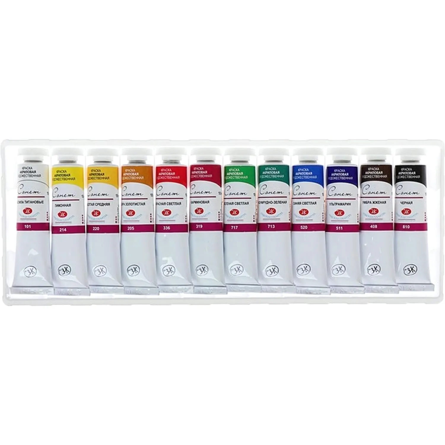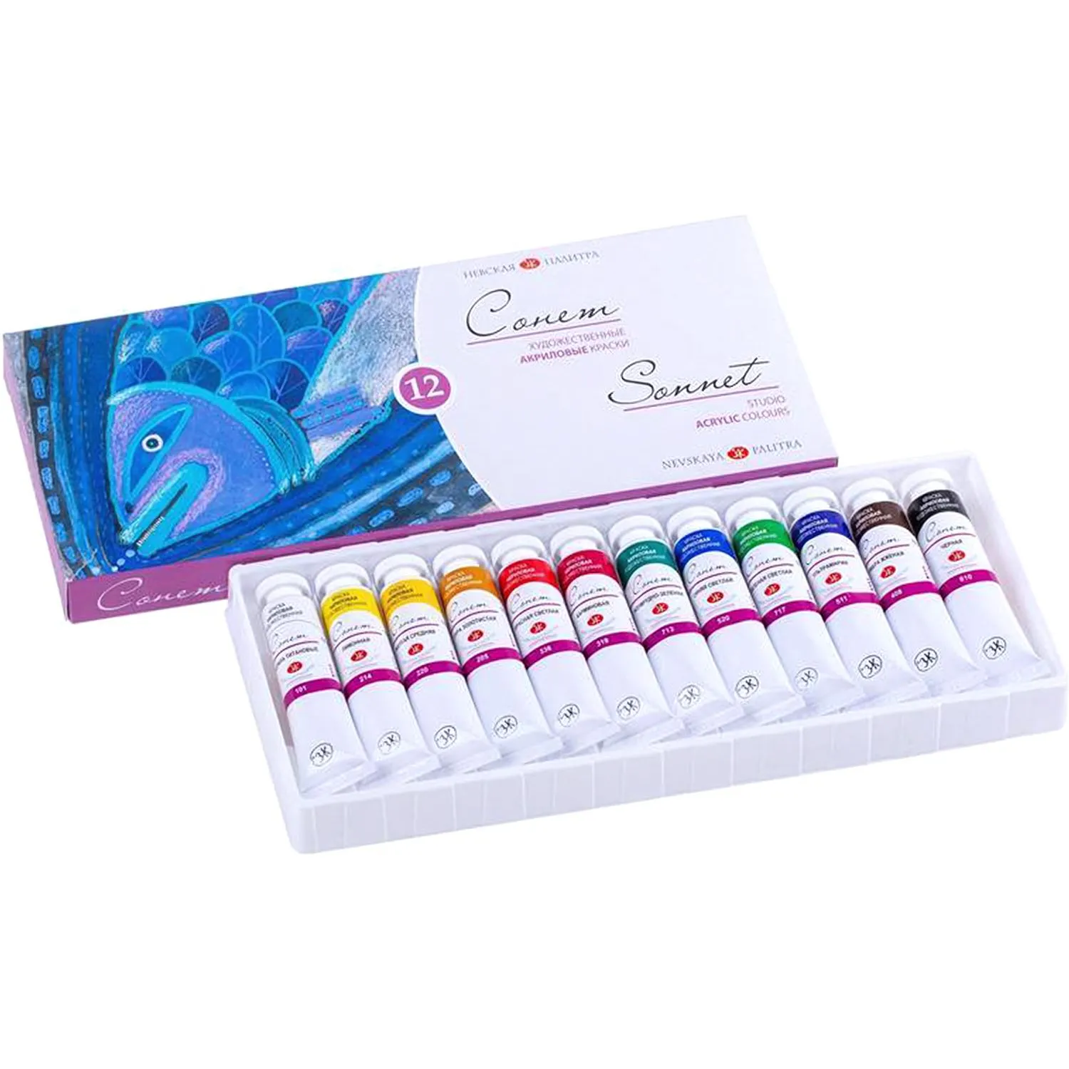 Краски акриловые Невская палитра Сонет набор 12 цветов по 18 мл в тубах