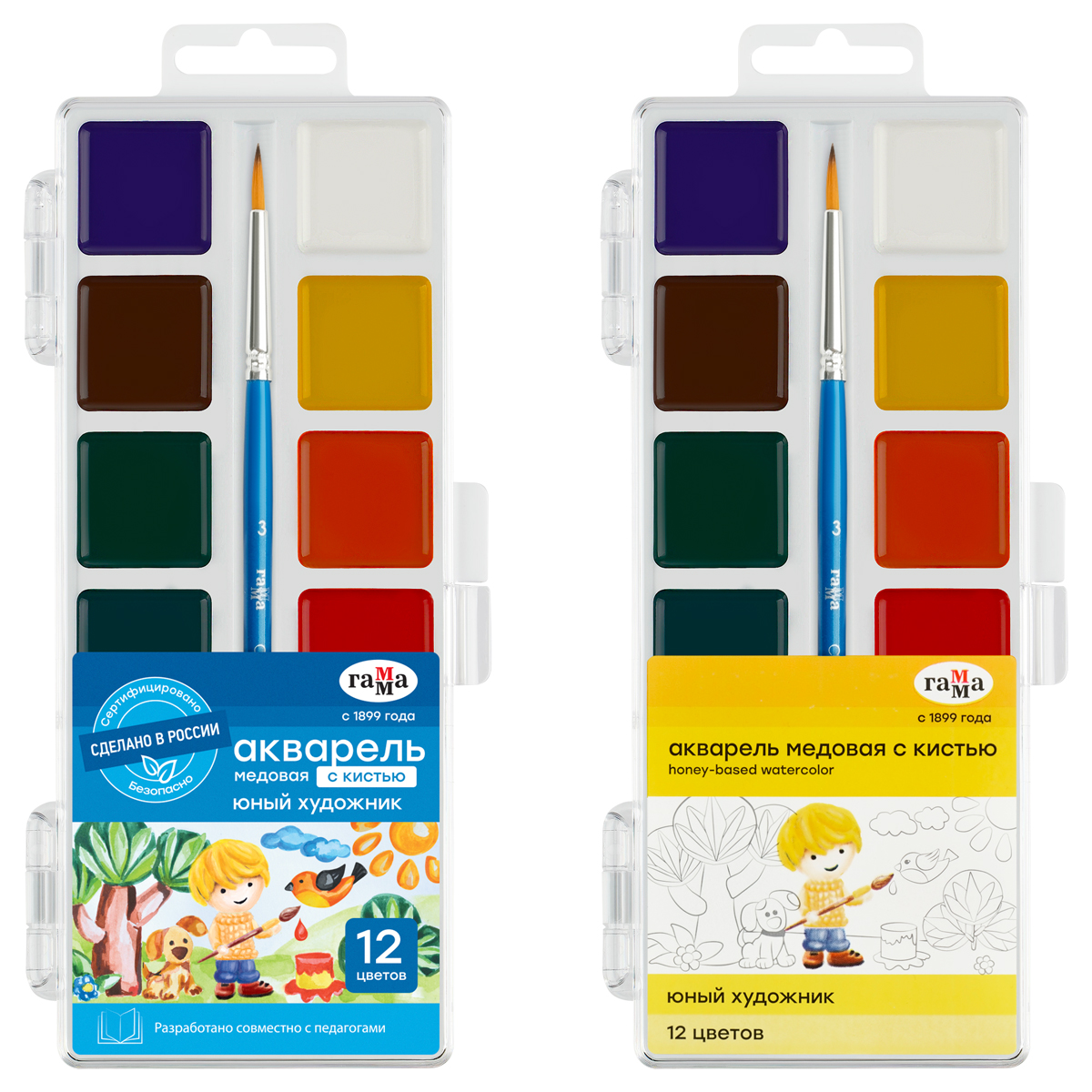 Краски акварельные медовые Гамма Юный художник 12 цветов