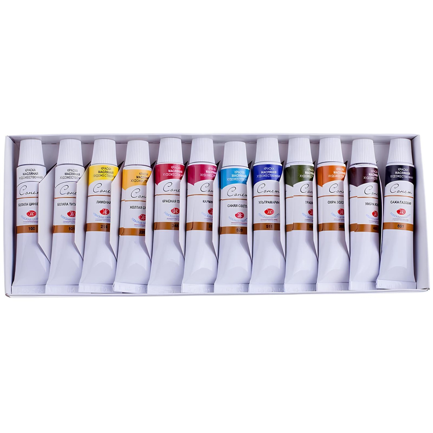 Краски масляные Невская палитра Сонет набор 12 цветов по 10 мл в тубах