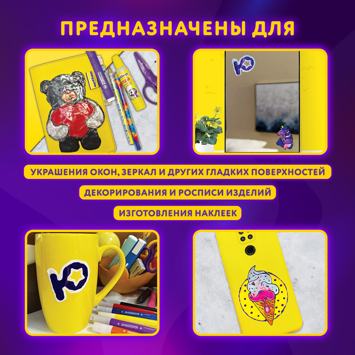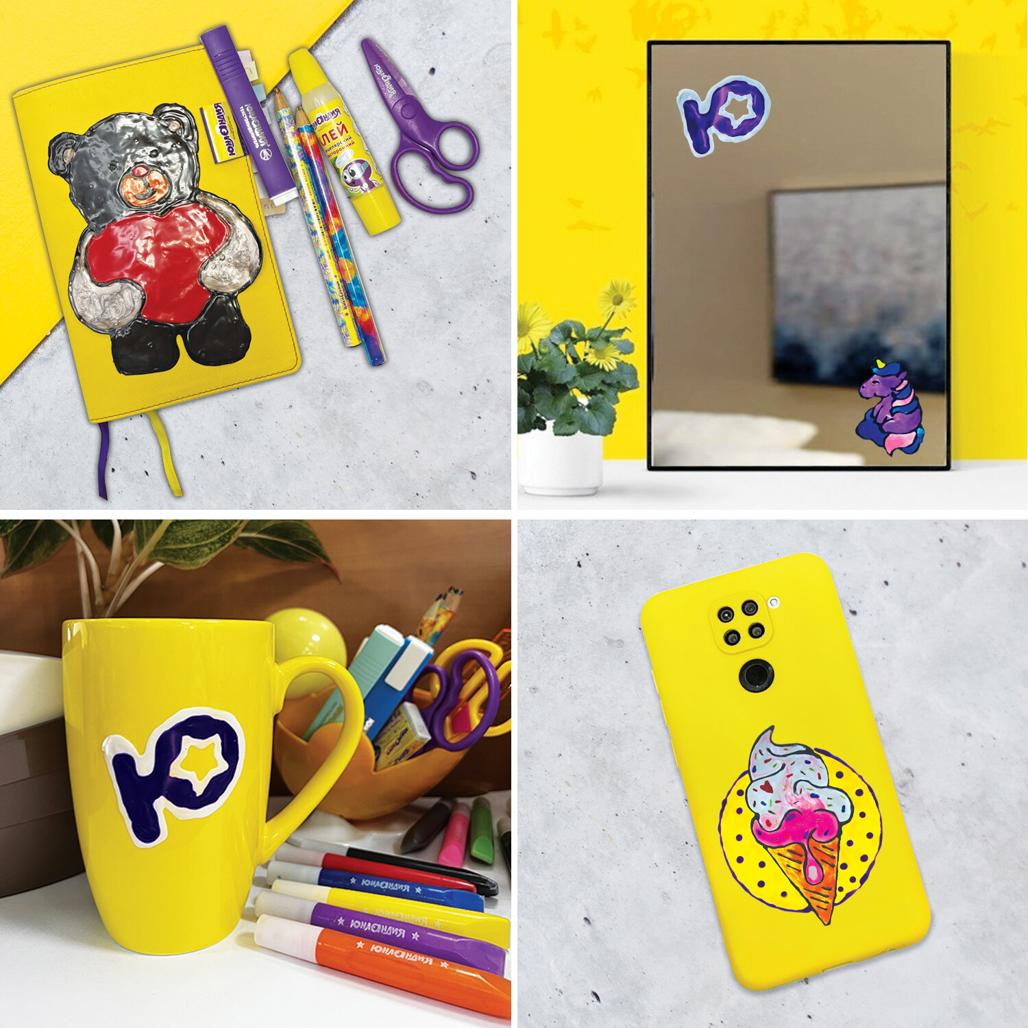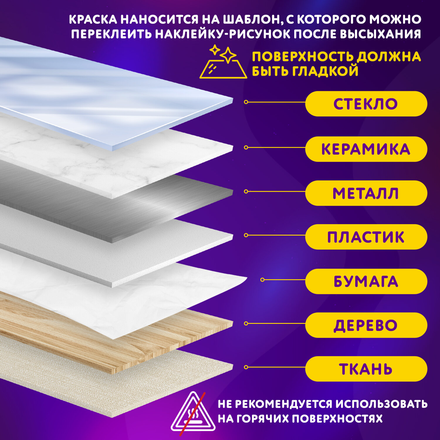Матовые непрозрачные краски ЮНЛАНДИЯ идеально подходят для создания наклеек, а качественные клеевые характеристики позволят надолго их закрепить на гладкой поверхности, что выгодно отличает их от обычных многоразовых наклеек.