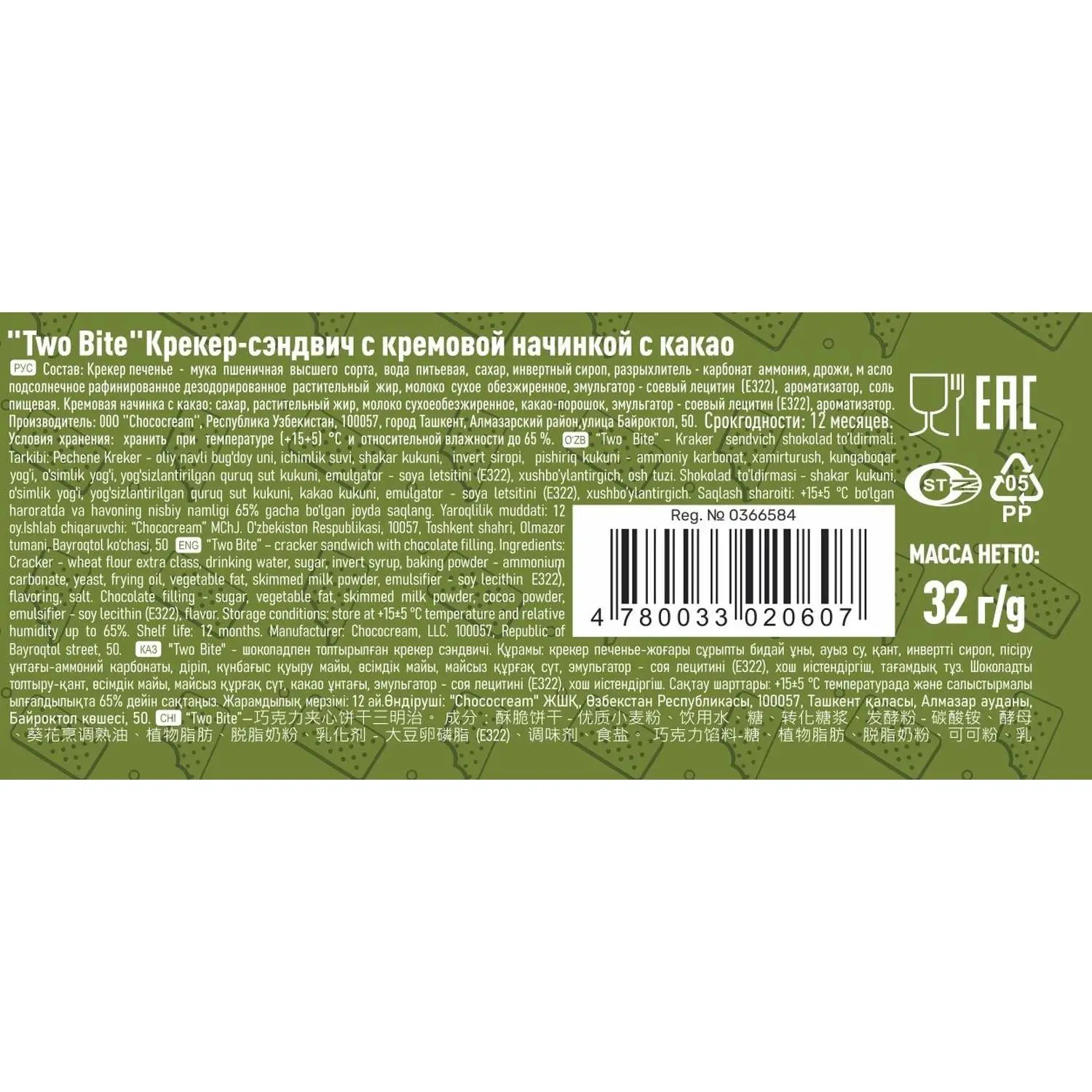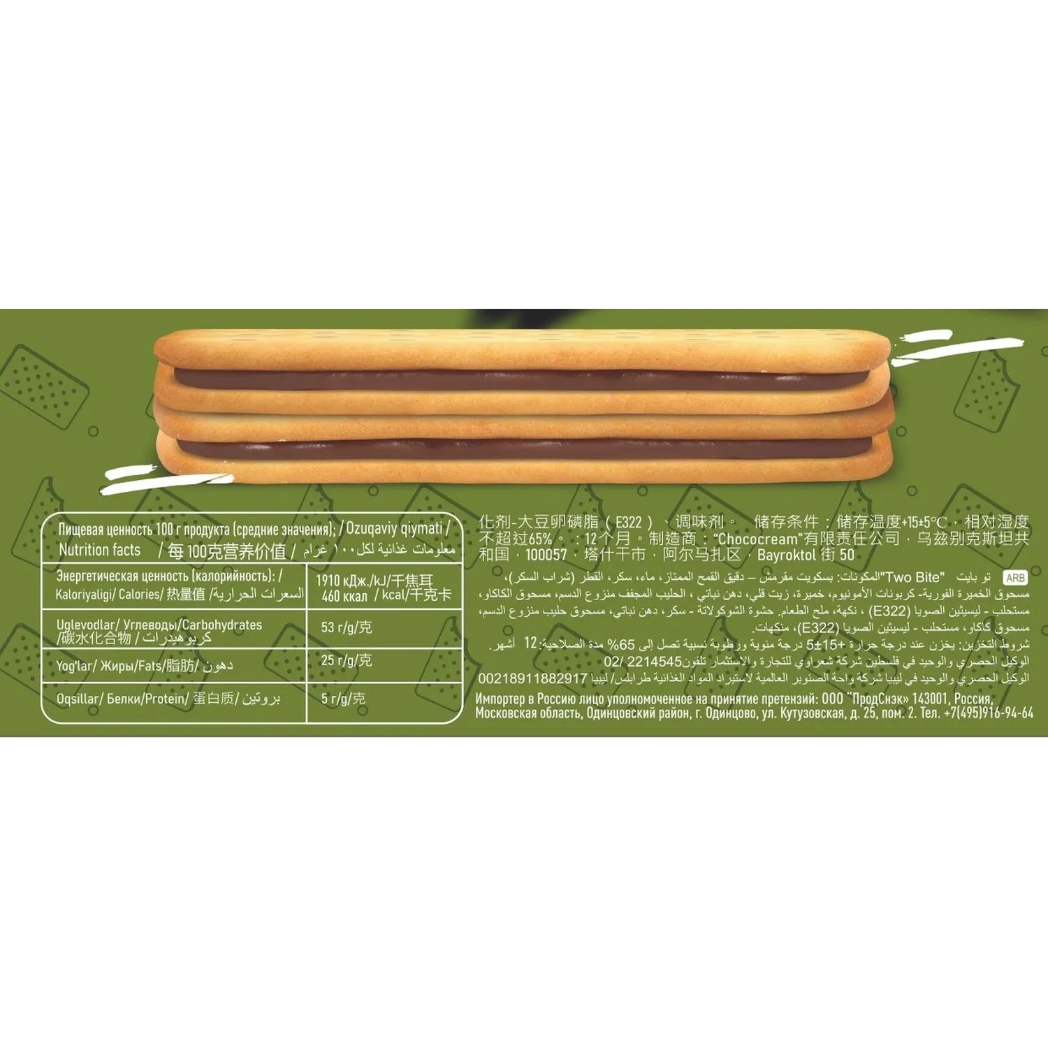 Крекер TWO BITE сэндвич с шоколадной начинкой, 32гx24шт/уп Цена за шт. 973 ₽ - + Перейти в корзину Добавить в корзину Мин. партия: 1 В наличии Артикул 409134 Бренд Two bite Поделитесь в соцсетях: Характеристики Бренд Two bite Страна производства Узбекистан Вид печенья крекер Тип товара крекер Срок годности 12 Тип упаковки картонная коробка Подобрать аналоги Вопросы? Спросите нас Любые вопросы по товару «Крекер TWO BITE сэндвич с шоколадной начинкой, 32гx24шт/уп» вы можете задать нашим продавцам по телефонам +7 (495) 215-28-10, 8 (800) 555-3604, электронной почте info@ofsi.ru и в скайпе ofsi.ru. Сообщите менеджеру артикул этого товара: 409134. Спросите нас об этом товаре прямо сейчас: Отчество Ваше имя Ваш телефон E-mail Тема вопроса (не меняется) Ваш вопрос Спросить