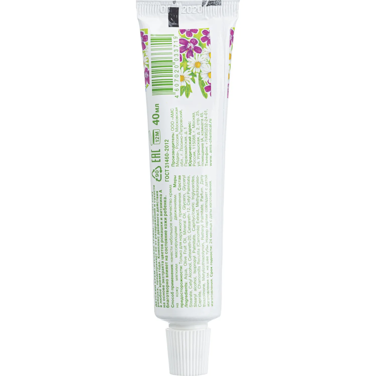 Крем детский Русские Травы смягчает кожу ребенка, предохраняет ее от раздражений и сухости в любое время года. Легко впитывается и распределяется по коже, не оставляет жирный блеск. Особая формула крема содержит специальные компоненты — экстракт ромашки и витамин, А, благотворно влияющие на состояние кожи ребенка, смягчающие и питающие ее. Экстракт ромашки оказывает антисептическое и ранозаживляющее действие.Особенности: — Высокий увлажняющий/смягчающий эффект — Не оставляет жирный блеск и липкость — Быстро впитывается — Содержит натуральный растительный экстракт и витамин, АСпособ применения: Используется в готовом виде. Нанести небольшое количество крема на кожу ребенка легкими, массирующими движениями.рН готового средства, ед.: около 5,8 Плотность при 20 С, г/см3: 1,01Состав: Paraffinum Liquidum, Aqua, Ceresin, Paraffin, Sorbitan Oleate, Hydrogenated Vegetable Oil, Lanolin, Magnesium Sulfate, Ethyl Linoleate (and) Ethyl Linolenate (and) Ethyl Oleate, Benzyl Acetate, Benzyl Alcohol, Eucalyptus Globulus Leaf Oil, Сhamomilla Recutita (Matricaria) Flowers Extract, Retinyl Palmitate, Menthol.