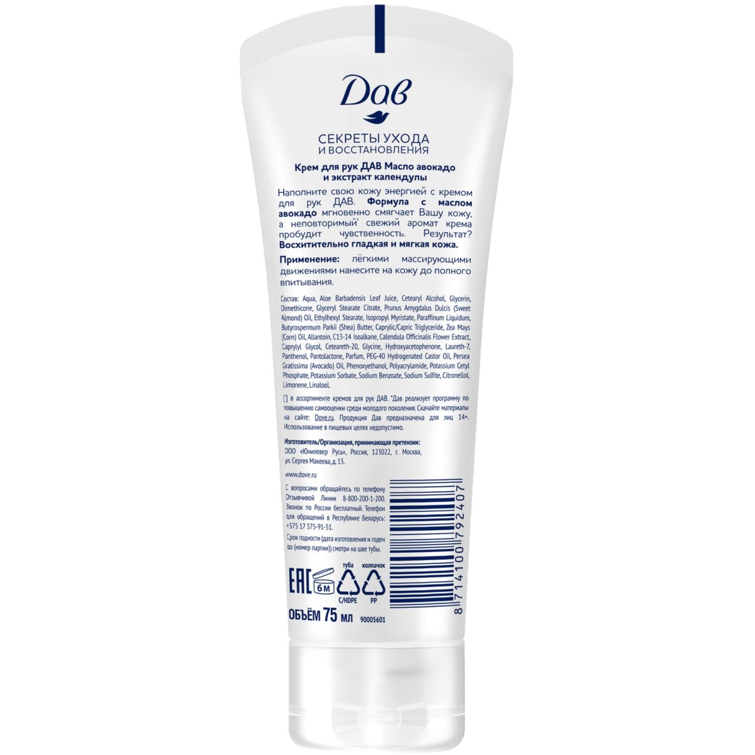 Крем для рук Dove масло авокадо и экстракт календулы 75 мл