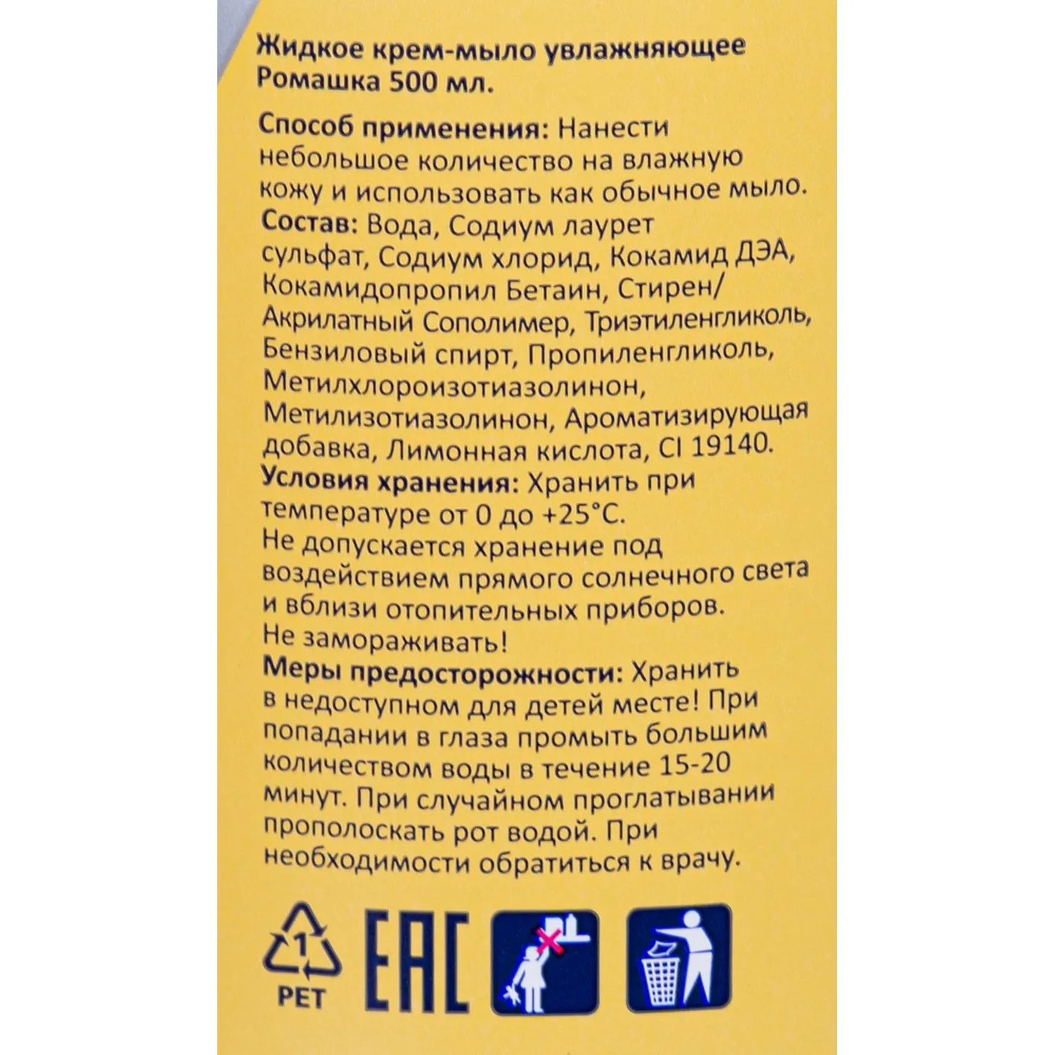 Назначение: крем-мыло с экстрактом ромашки эффективно очищает и смягчает кожу, глубоко увлажняет её, а также создаёт на ней особый антибактериальный барьер. Благодаря мягкой моющей основе с активными веществами, мыло идеально подходит для ежедневного применения.