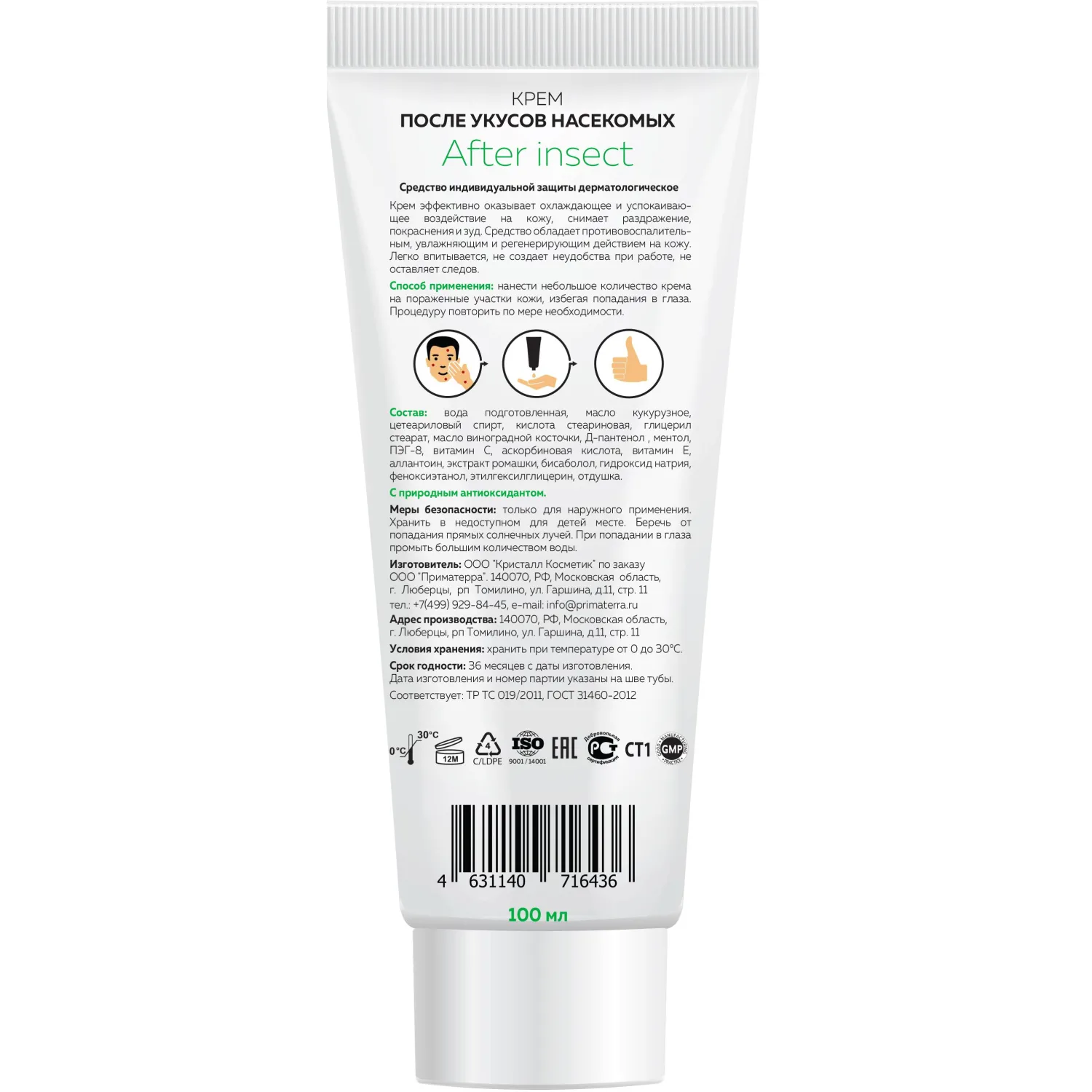 Крем регенерирующий М SOLO After Insect предназначен для ухода за кожей, после укусов насекомых. Эффективно оказывает охлаждающие и успокаивающее воздействие на кожу, снимает раздражение, покраснение и зуд. Имеет легкую, невесомую структуру. Быстро впитывается, не оставляя жирной пленки. Крем создан на основе кукурузного масла, которое применяется для ухода за чувствительной и детской кожей, являясь гипоаллергенным. Расход средства 0,5-1 мл. В состав крема входят такие компоненты как: Альфа-Бисаболол — эффективный противовоспалительный ингредиент, снимающий различные раздражения на коже. Д-пантенол — эффективен для устранения небольших повреждений кожи — ссадин, ожогов, трещин; ускоряет процесс регенерации клеток кожи. Аллантоин — многофункциональный ингредиент, способствует регенерации клеток кожи и быстрому заживлению ссадин и трещин, снимает раздражение. L-ментол — уменьшает отечность, тонизирует кожу, освежает и охлаждает, уменьшает раздражение и воспаление. Данный крем не содержит спирта, который сушит кожу и растительных экстрактов — потенциальных источников аллергенов. Упаковка: 100 мл. Условия хранения: избегать попадания прямых солнечных лучей. Срок годности от даты изготовления: 36 месяцев. Соответствует стандартам ТР ТС 019.2011/ГОСТ 31460-2012, СТ1. Качество соответствует требованиям нормативных документов ТР ТС 019-2011, произведено в соответствии с ГОСТ 31460-2012.