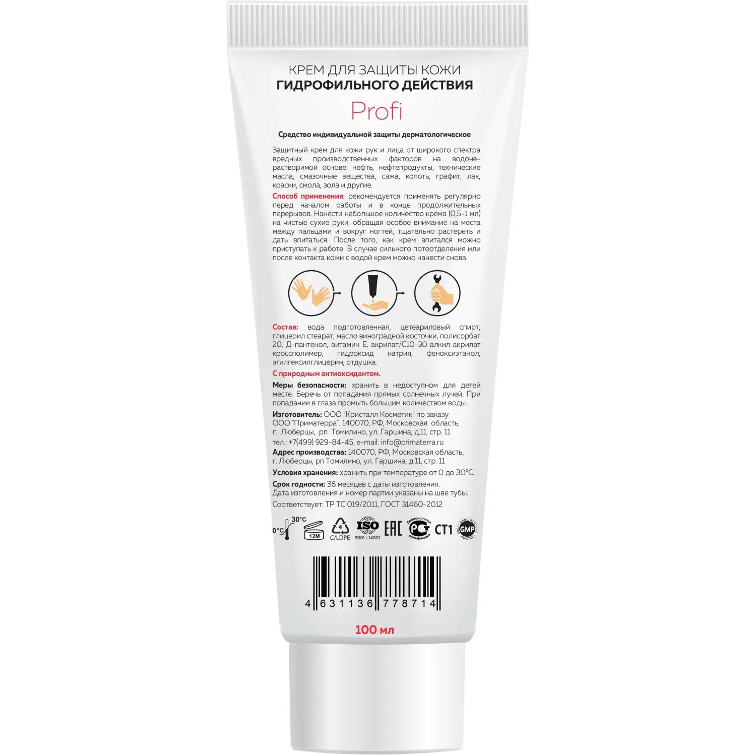 Крем защитный М Solo Profi — специализированный крем для рук. Эффективно защищает и облегчает очистку от профессиональных загрязнений — масляные и сажевые загрязнения, в том числе нефть, мазут, битум, жир, графит, металлическая пыль, СОЖ, масла минеральные нефтяные, шпатлевки, лаки, краски, клеи, смолы, зола, сажа и другие технологические и бытовые загрязнения. Содержит компоненты (масло виноградной косточки, D-пантенол и витамин E), которые защищают, смягчают и увлажняют кожу рук не нарушая ее физиологических функций. Легко наносится на кожу, не создает неудобства при работе, после работы легко смывается. Не вызывает коррозии на металлических деталях, не портит обрабатываемые изделия и материалы. Не содержит запрещенных, вредных компонентов. Способ применения: рекомендуется применять регулярно перед началом работы и в конце продолжительных перерывов. Нанести небольшое количество крема (0,5-1 мл) на чистые сухие руки, обращая Особое внимание на места между пальцами и вокруг ногтей, тщательно растереть и дать впитаться. После того, как крем впитался можно приступить к работе. В случае сильного потоотделения или после контакта кожи с водой крем можно нанести снова. После окончания работы смыть при помощи жидкого мыла M Solo Soft или очищающей пасты M Solo с абразивом. Упаковка: туба 100 мл. Условия хранения: избегать попадания прямых солнечных лучей. Срок годности от даты изготовления 36 месяцев. Соответствует стандартам ТР ТС 019/2011, ГОСТ 31460-2012. Не содержит вредных веществ — силиконов, минеральных абразивов, горючих и летучих органических растворителей по ТР ТС 019/2011 в части безопасности средств дерматологических. Крем относится к сегменту «эконом». Качество соответствует требованиям нормативных документов.